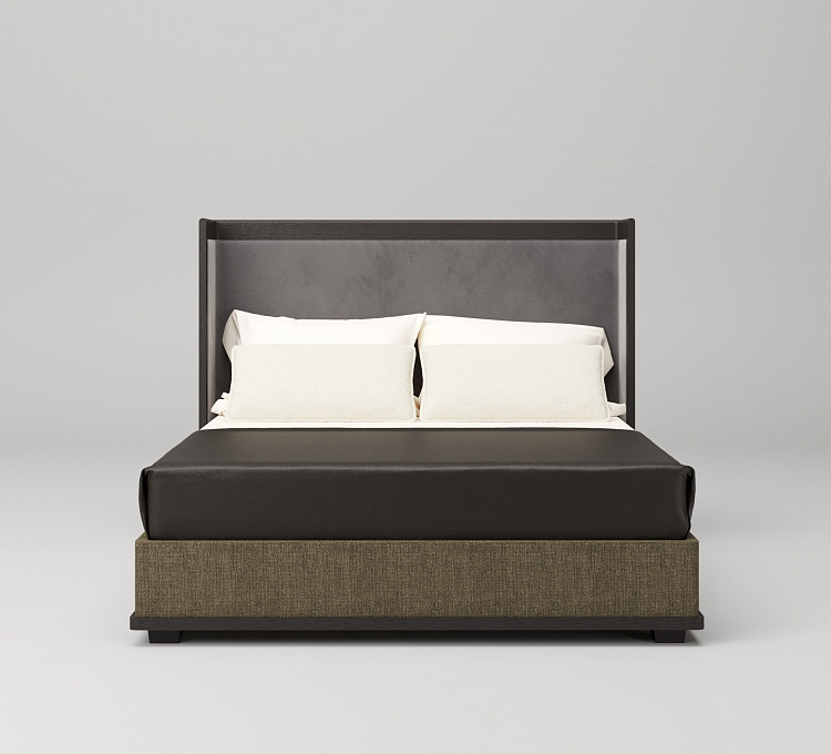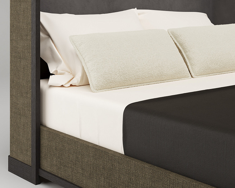 Кровать Modénature Lutetia Bed развивает тему Collection Historique. Главный акцент — на четком контуре из темного дерева, проходящем по краям основания и изголовья. Изголовье с высокими боковыми стойками образует глубокую нишу. Основание обтянуто плотной фактурной тканью. Пропорции модели подчеркнуто горизонтальные, что усиливает ощущение устойчивости.