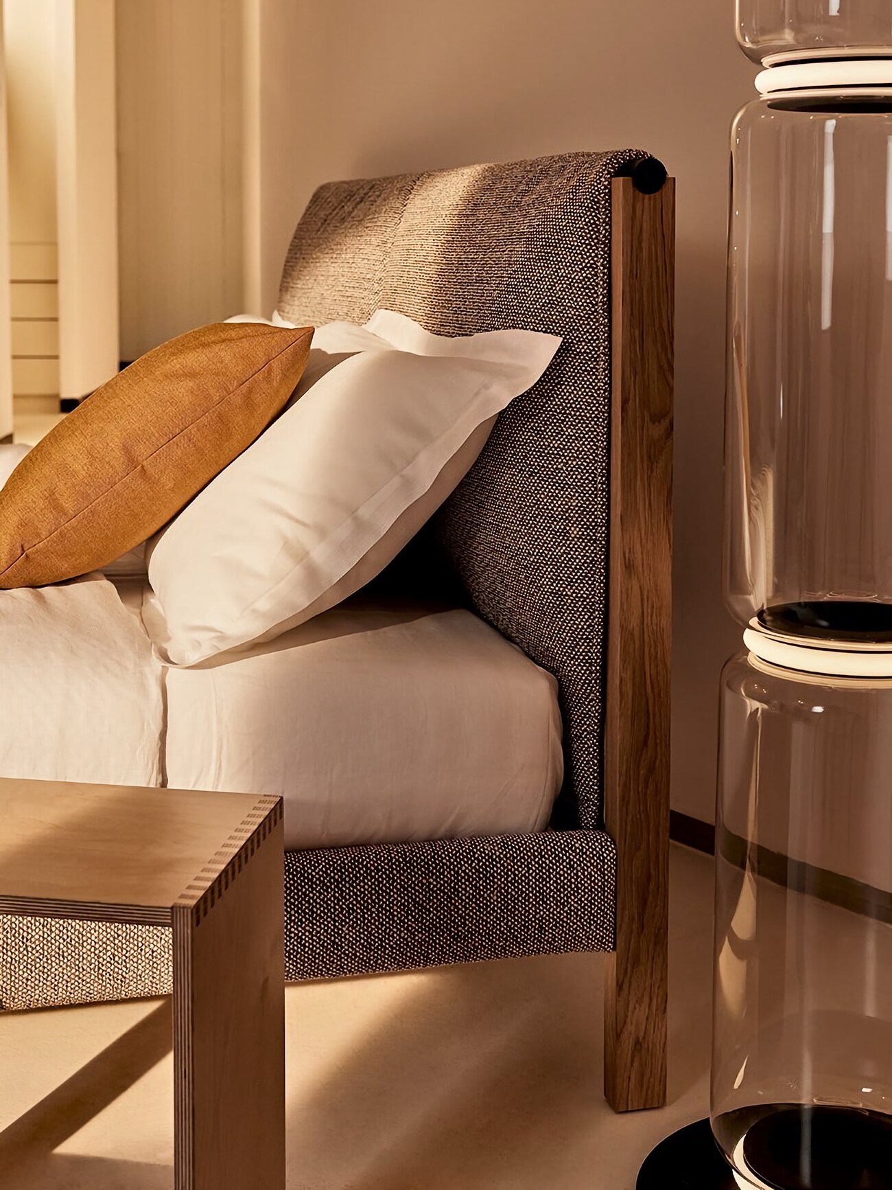 Кровать Zanotta Ricordi воплощает концепцию спокойной роскоши, привнося в интерьер спальной комнаты атмосферу уюта и премиальности. Высокое изголовье с декоративной отстрочкой выступает в качестве отдельного визуального акцента, одновременно обеспечивая мягкую поддержку тела. Чехлы кровати являются полностью съёмными.