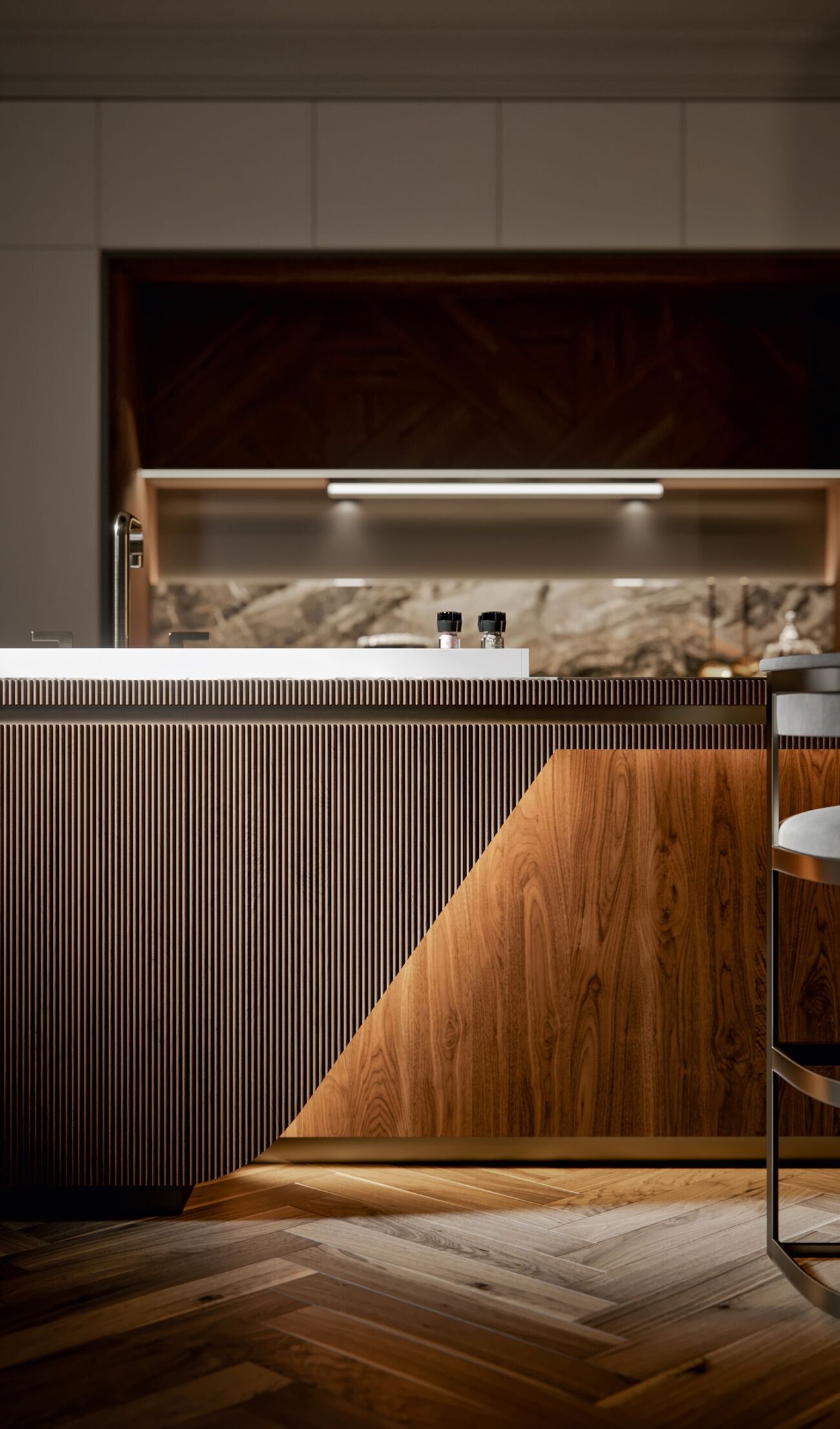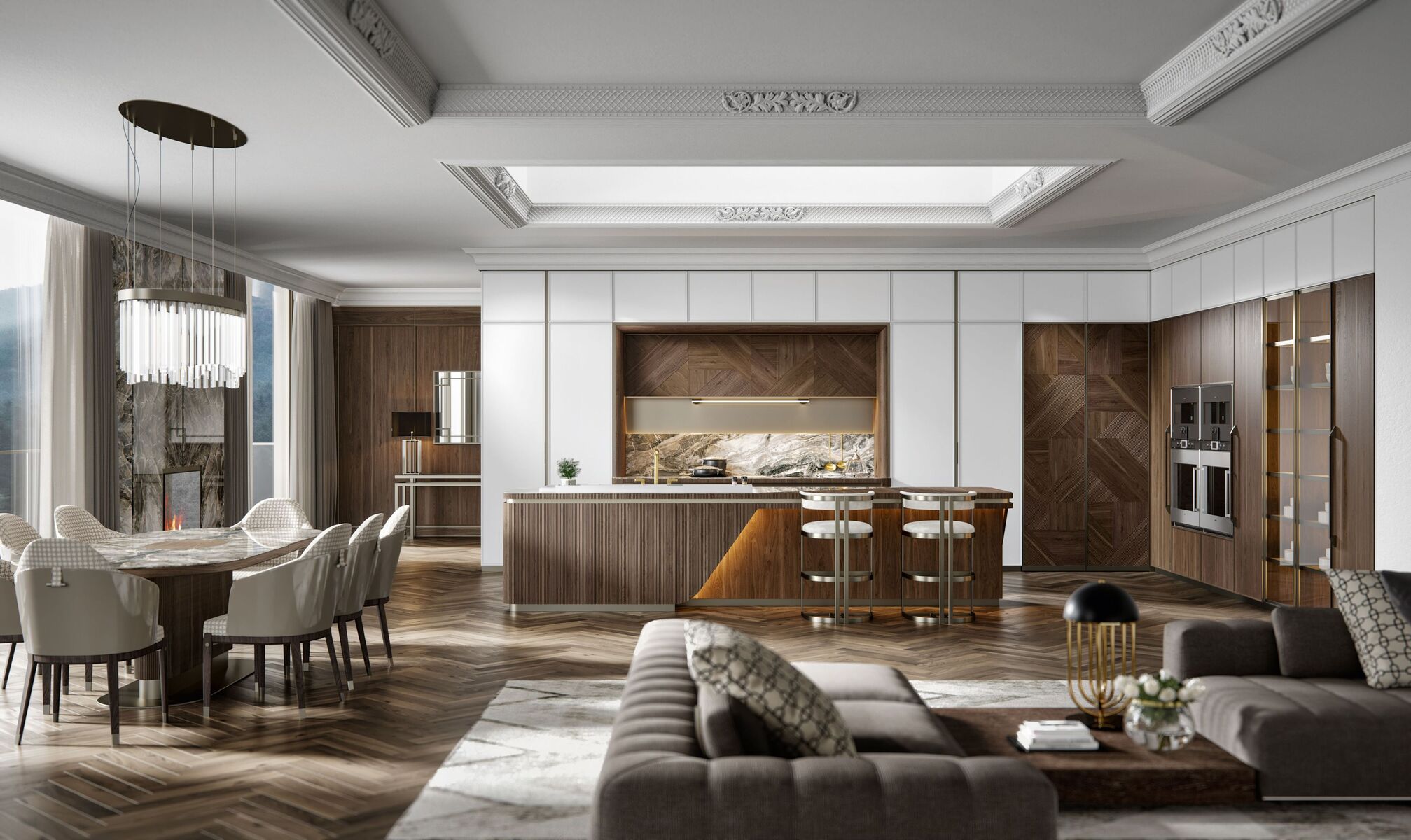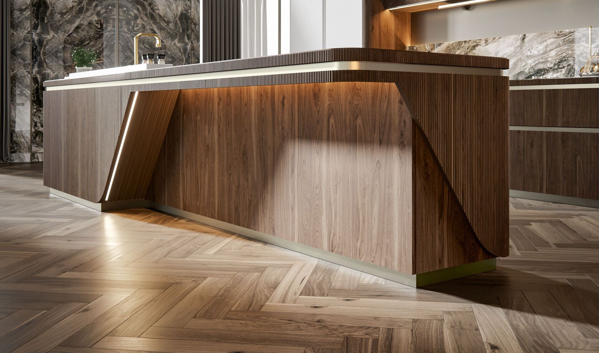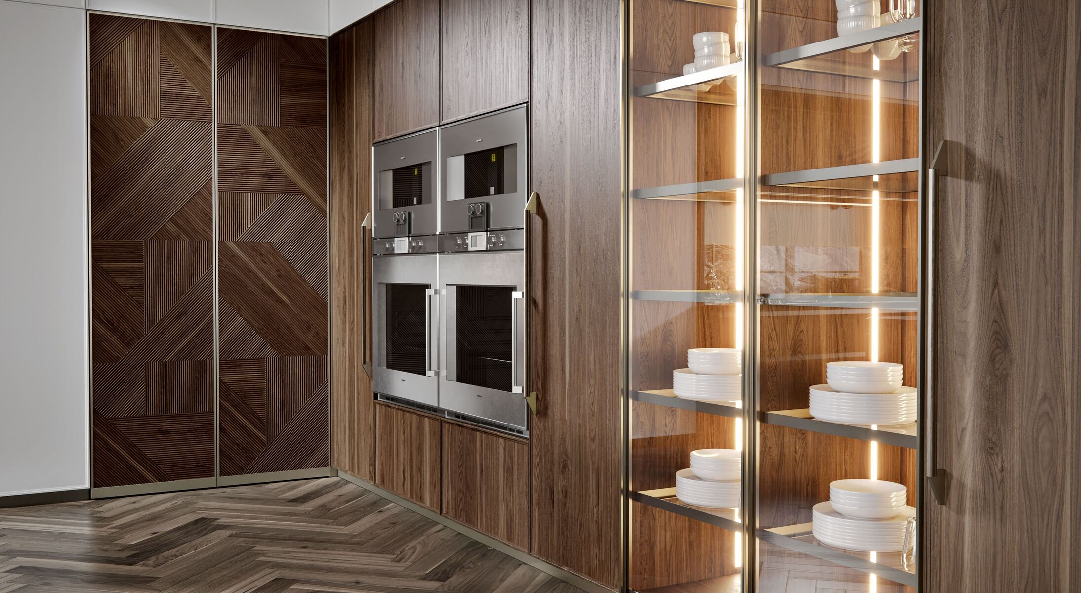 Кухня Old Line Glamour является олицетворением элегантности и роскоши. Глубокие тёплые оттенки и натуральное дерево придают мебельной композиции благородный вид. Особая изюминка коллекции — дверь с трёхмерным эффектом, дарящая приятные тактильные ощущения и делающая кухню стильным дополнением интерьера.