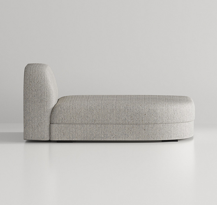 Кушетка Modénature Jacasta Daybed от Yana Bykova имеет прямоугольную форму с одним скругленным торцом. Противоположный торец образует массивная мягкая спинка округлой формы. Весь предмет обит светлой тканью с однородной фактурой. Сиденье и спинка представляют собой единый объем без видимых швов, стежек или декоративных элементов.