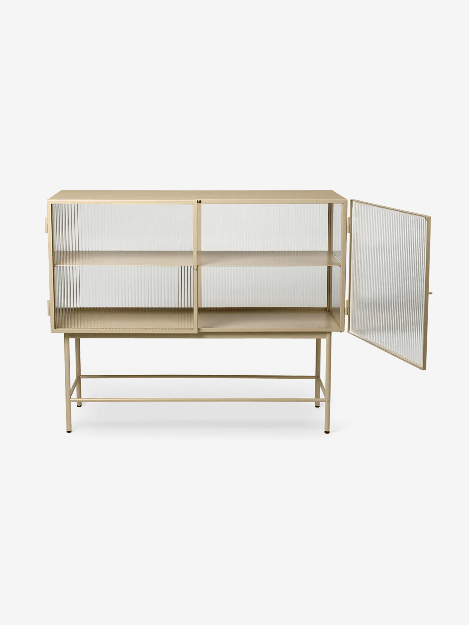 Буфет Ferm Living Haze Sideboard станет элегантным дизайнерским решением для столовой зоны или домашнего офиса. Гладкий металлический каркас буфета идеально впишется в интерьер любого стиля. Haze Sideboard дополнен изысканными дверцами из текстурного рифлёного стекла.