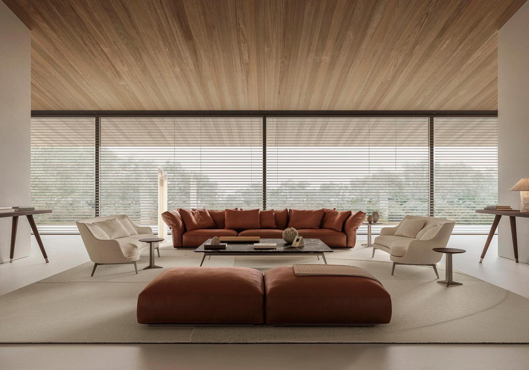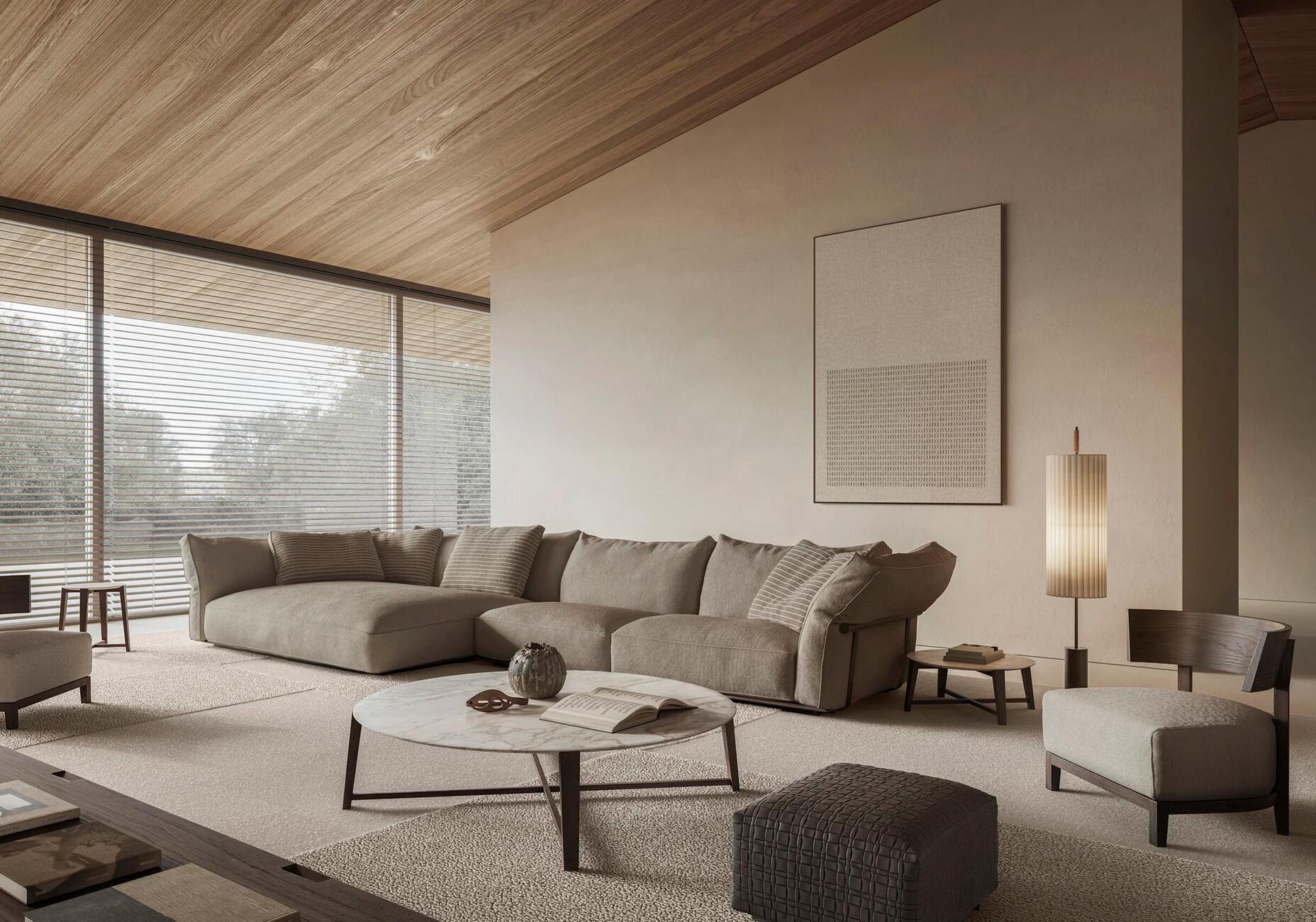 Диван Flexform Camelot доступен в различных размерах и вариантах отделки. За подробностями можно обратиться к менеджерам Laboratory Dome.