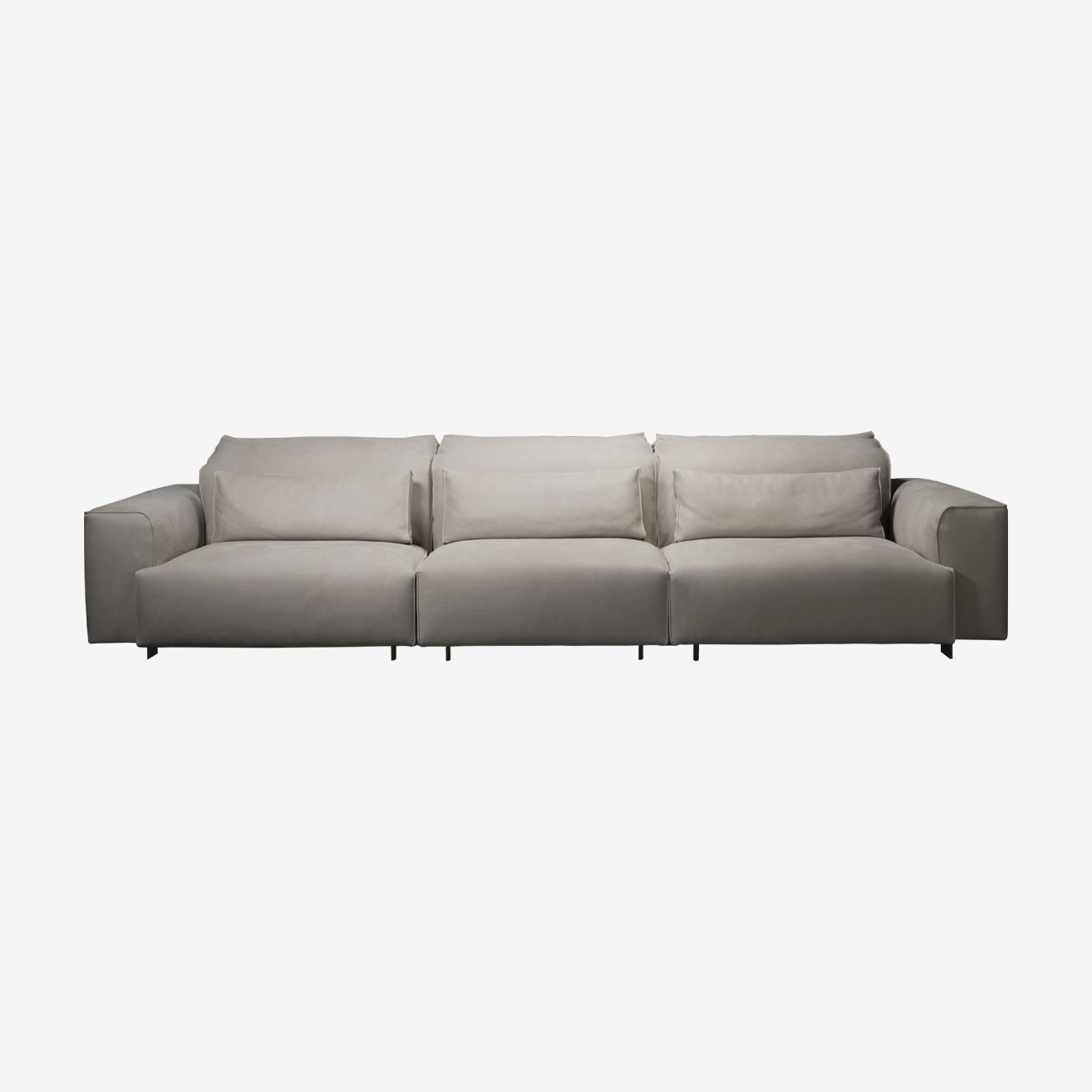 Диван Rens Sofa имеет деревянный каркас, покрытый высокоэластичной пеной. Подушки изготовлены из пеноматериала с наполнителем из полиэфирных волокон и гусиного пуха. Обивка: ткань, кожа. Ножки выполнены из стали с порошковым покрытием.