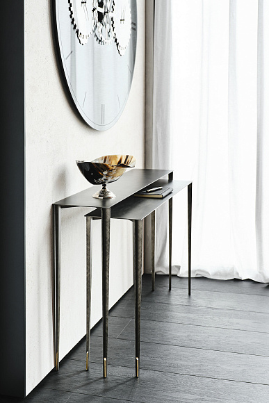 Комплект из 2-х консолей Cattelan Italia Etoile — воплощение грации и лёгкости. Грациозность консолей подчёркивается тонкими вытянутыми ножками. Комплект выполнен в матовом металлическом исполнении.