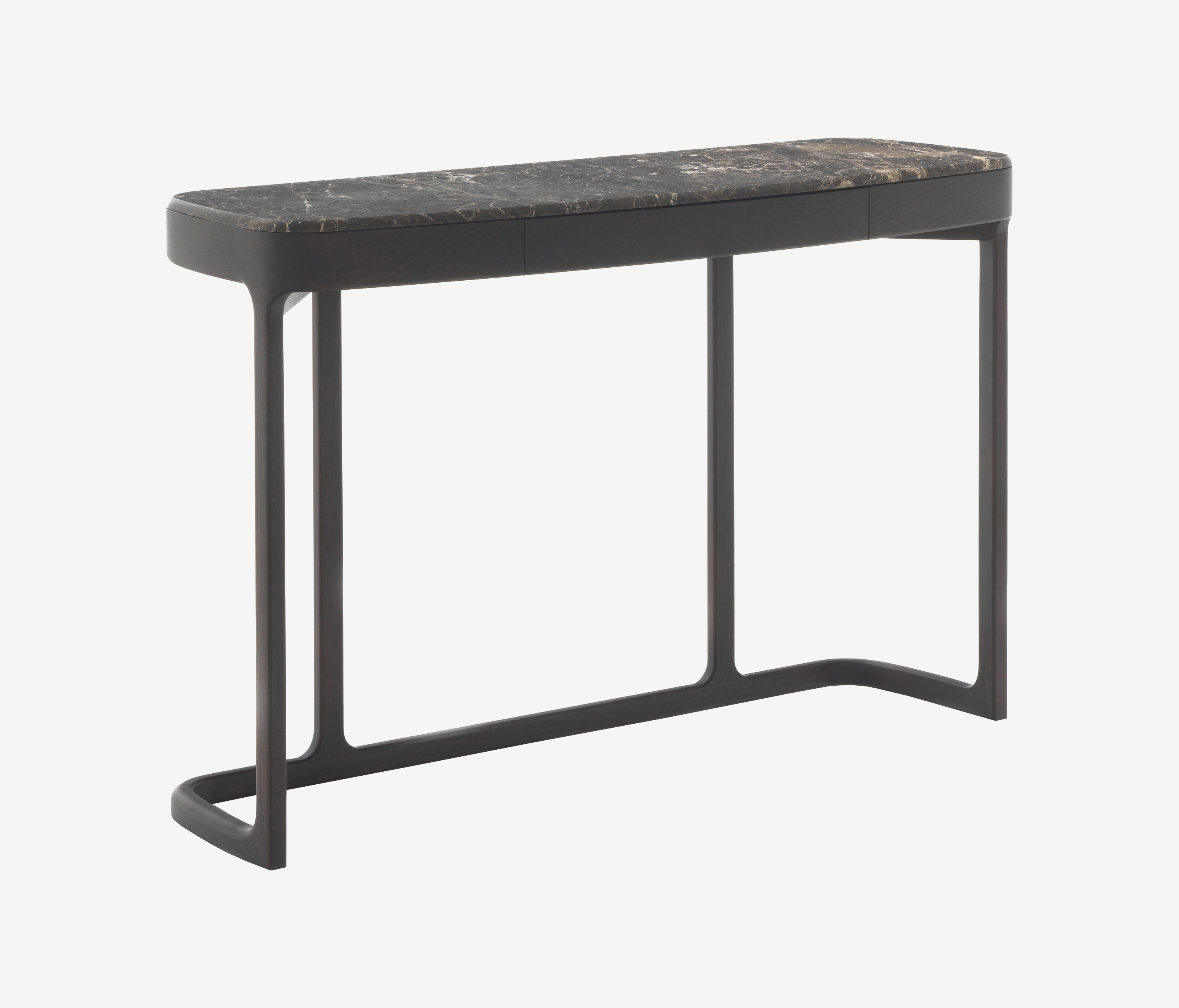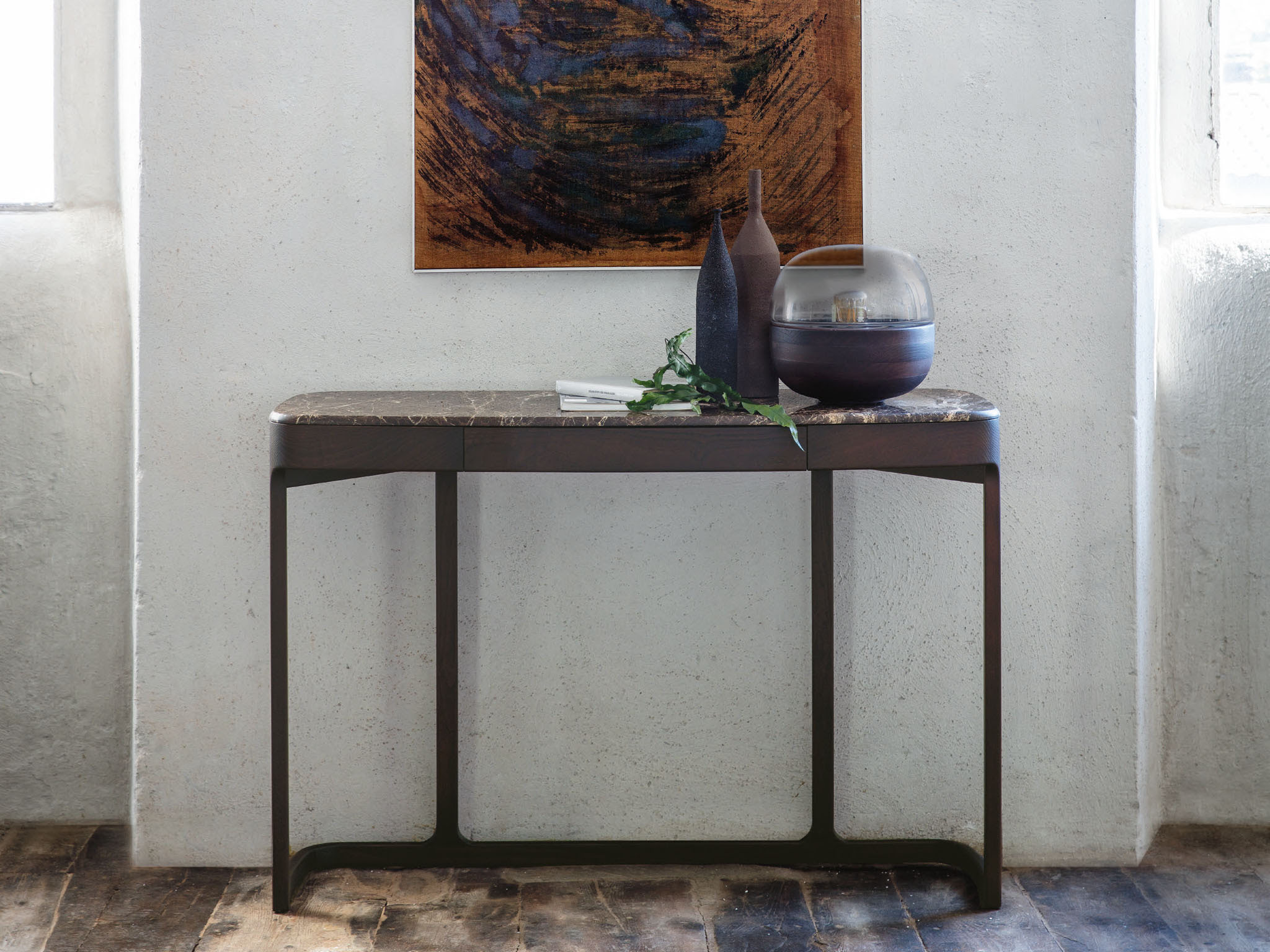 Консоль Porada Blush выделяется наличием металлического изогнутого основания, используемого вместо стандартных ножек. Скрытый ящик делает модель не только эстетичной, но и функциональной. Консоль станет гармоничной частью просторной или небольшой входной зоны.