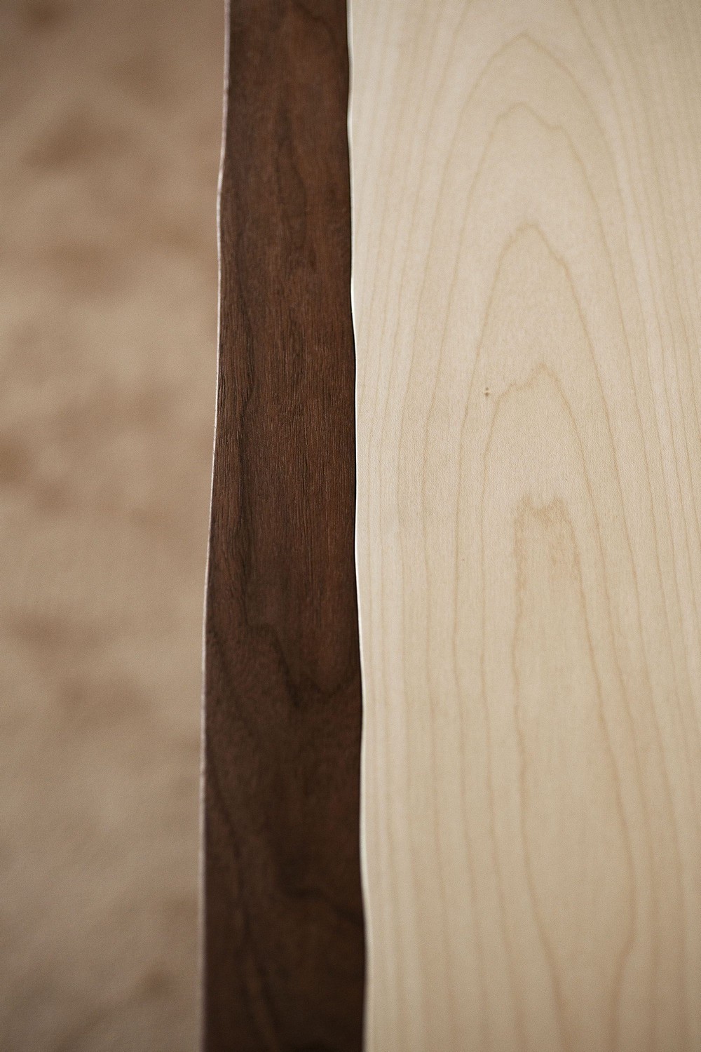 Основание: массив ясеня с тонировкой. Столешница: инкрустация из натурального тонированного клена.