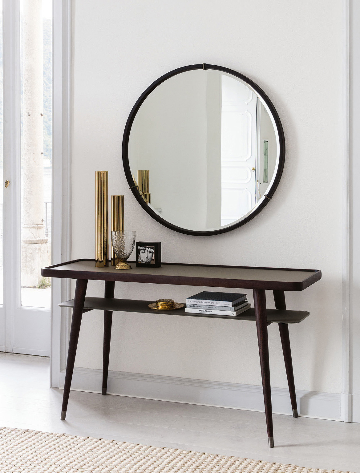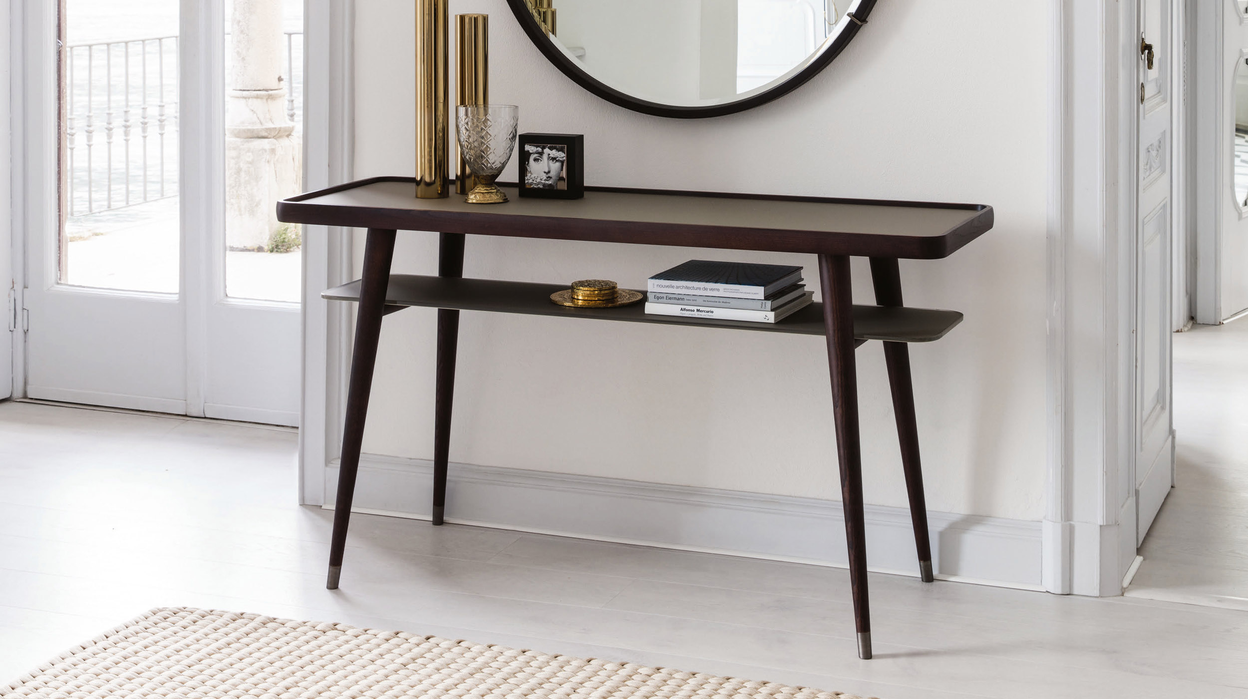Консоль Porada Chantal сочетает в себе благородный мрамор и уютное дерево. Особенностью этой модели является наличие двойной столешницы, значительно повышающей функциональность предмета. Элегантные ножки, сужающиеся книзу, украшены наконечниками из матового металла.