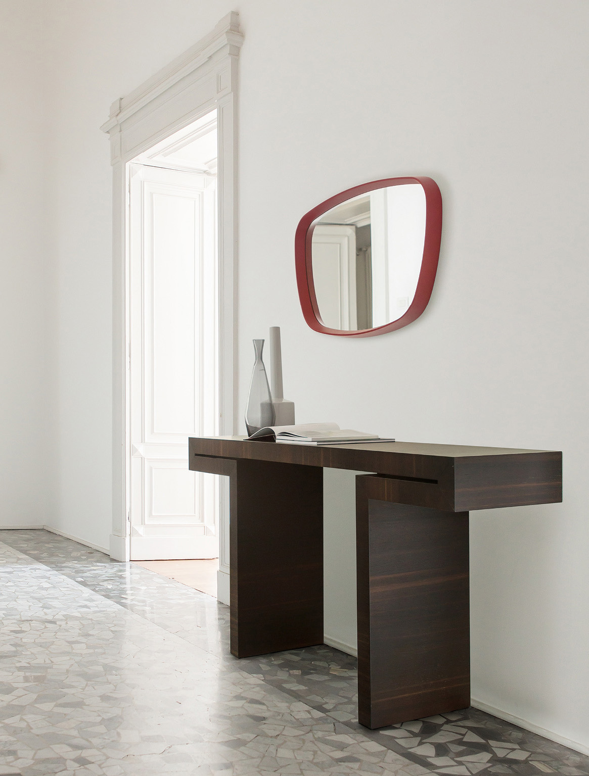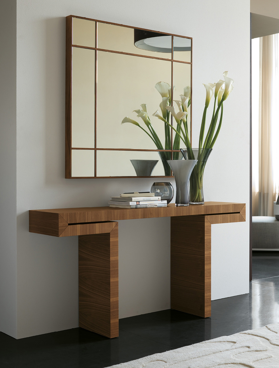 Консоль Porada Miyabi имеет необычный силуэт в форме буквы «Т». Использование натурального дерева с природной фактурой подчёркивает скульптурный дизайн модели. Консоль будет гармонично смотреться в прихожей, гостиной зоне или номере отеля. Разместив на моделью настенное зеркало, можно создать целостную композицию.