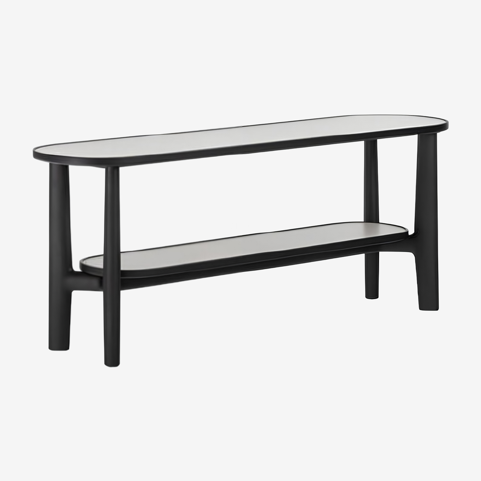Консоль Porada Rami Backsofa имеет мягкий силуэт с округлыми линиями. Каркас из массива ореха поддерживает две вместительные столешницы. Использование натурального мрамора делает консоль прочной и долговечной.