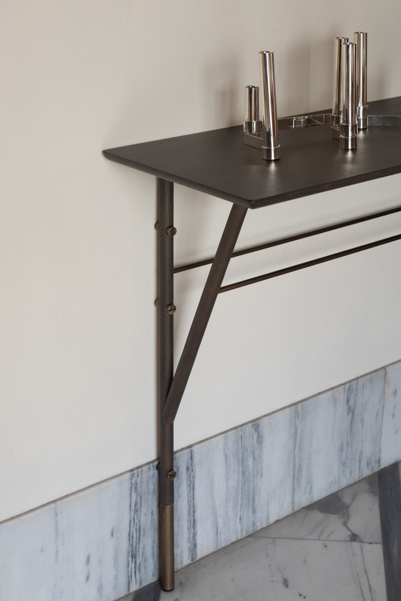 Консоль Potocco Wood_Y от Chiara Andreatti — настенная модель с Y-образными ножками. Столешница из массива ясеня с тонким профилем и прямыми кромками. Металлические элементы из бронзированной латуни выделяют узлы конструкции. Компактная модель для входной зоны сохраняет общий стиль коллекции Wood_Y.