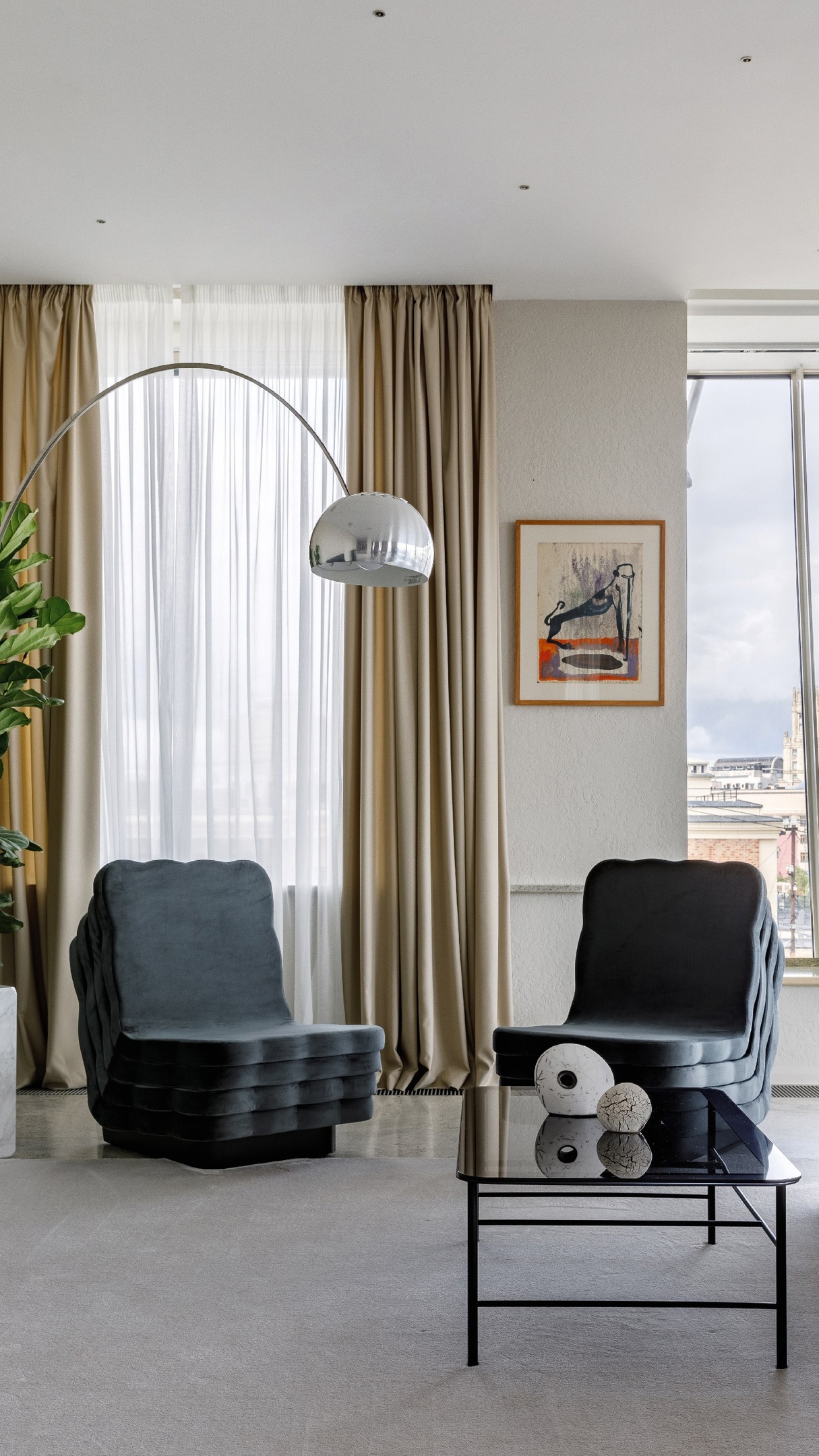 В основу концепции кресла Archipelago 55° — 37° YUBILEYNOE легло всеми узнаваемое печенье «Юбилейное». Этот причудливый предмет интерьера повторяет контур знаменитой сладости, изготовленной в начале 20-го века для императорской семьи. Создание слоёного каркаса со смягчёнными краями, напоминающими форму культового печенья, является своеобразной данью уважения, которую дизайнеры бренда решили принести российской кондитерской традиции дореволюционных времён. Кресло 55° — 37° YUBILEYNOE доступно в различных вариантах текстильной обивки.