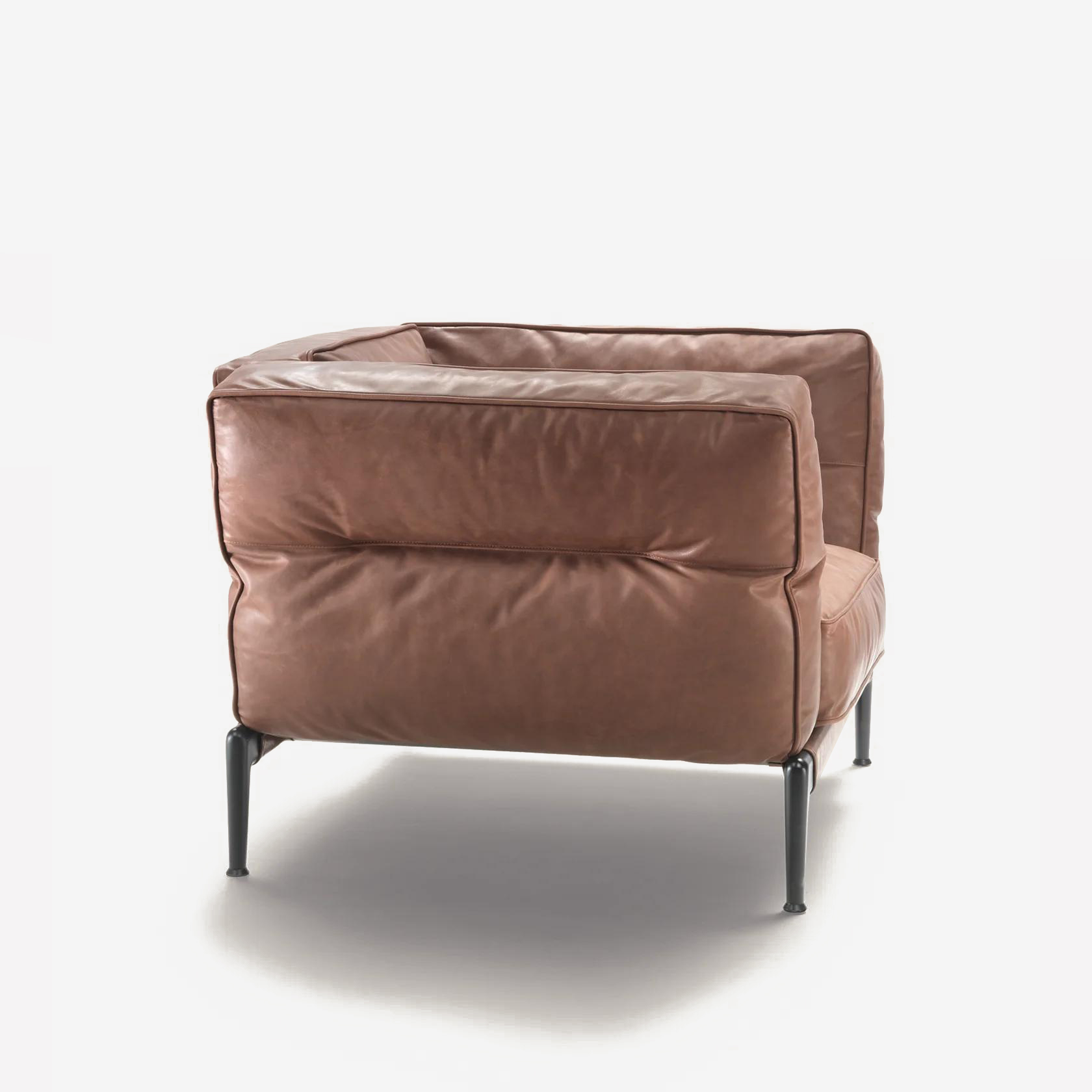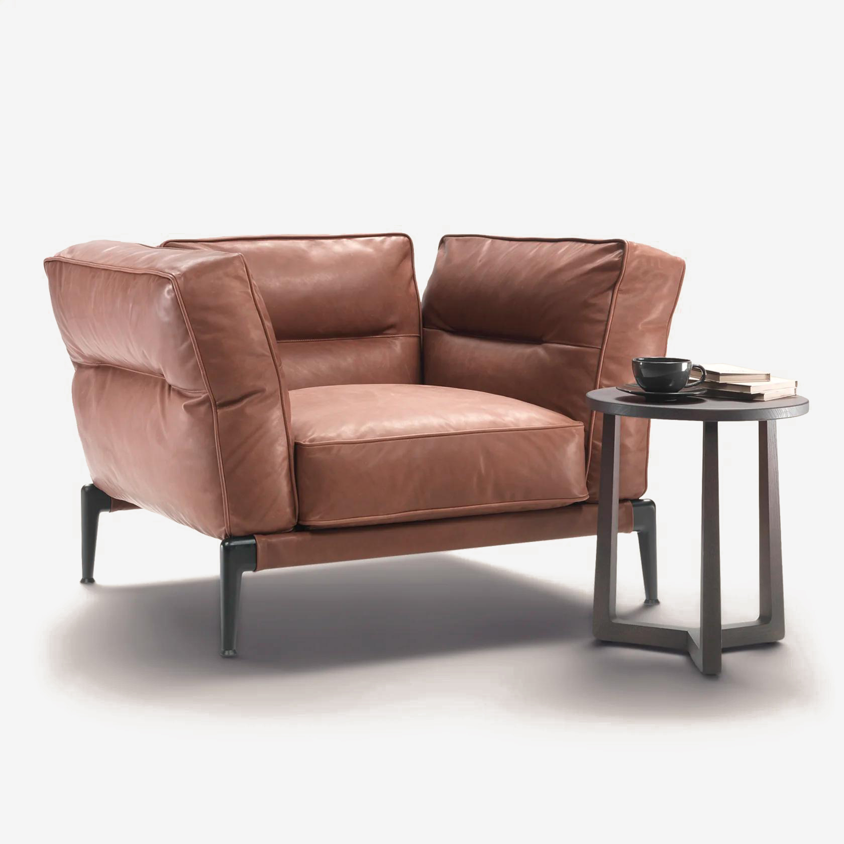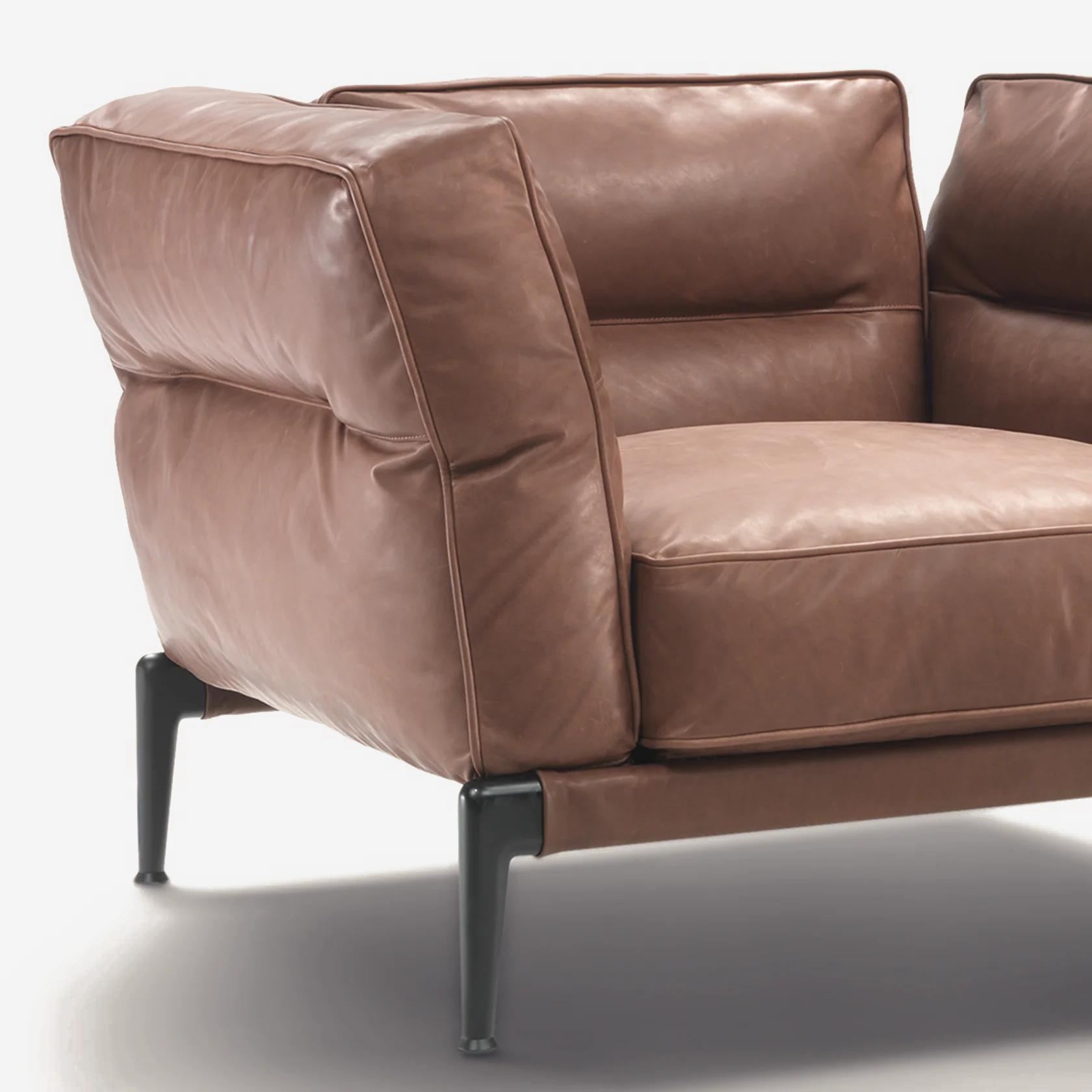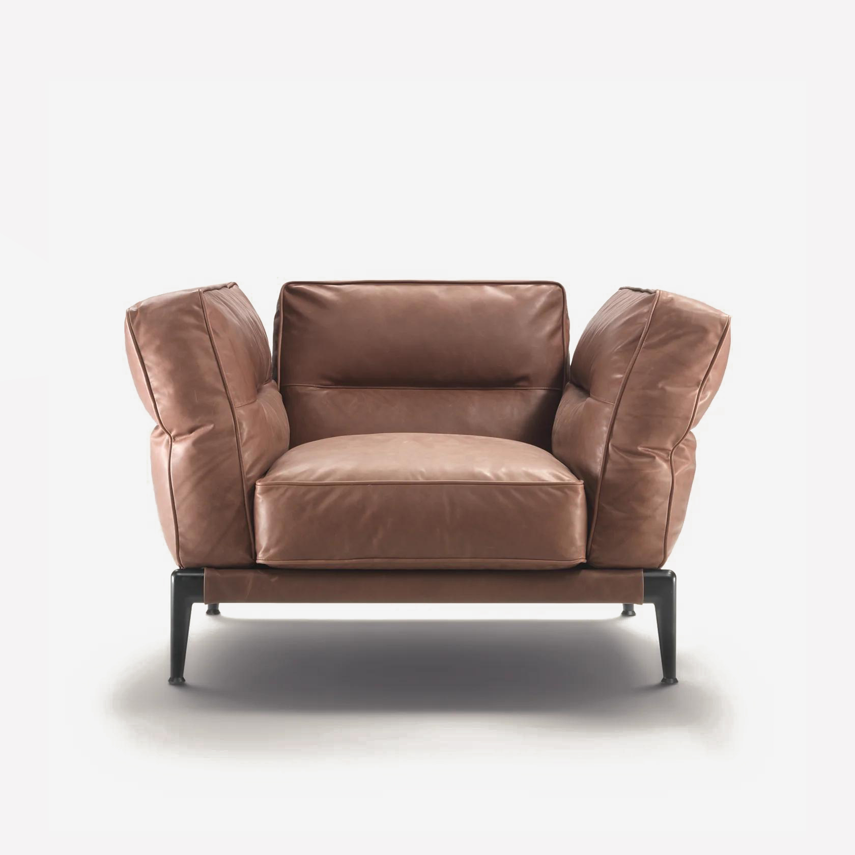 Кресло Flexform Adda отличается строгим современным дизайном. Аскетичные ножки модели мягко контрастируют с объёмными подушками и массивными подлокотниками. Декоративные горизонтальные швы создают изящные складки на поверхности кресла.