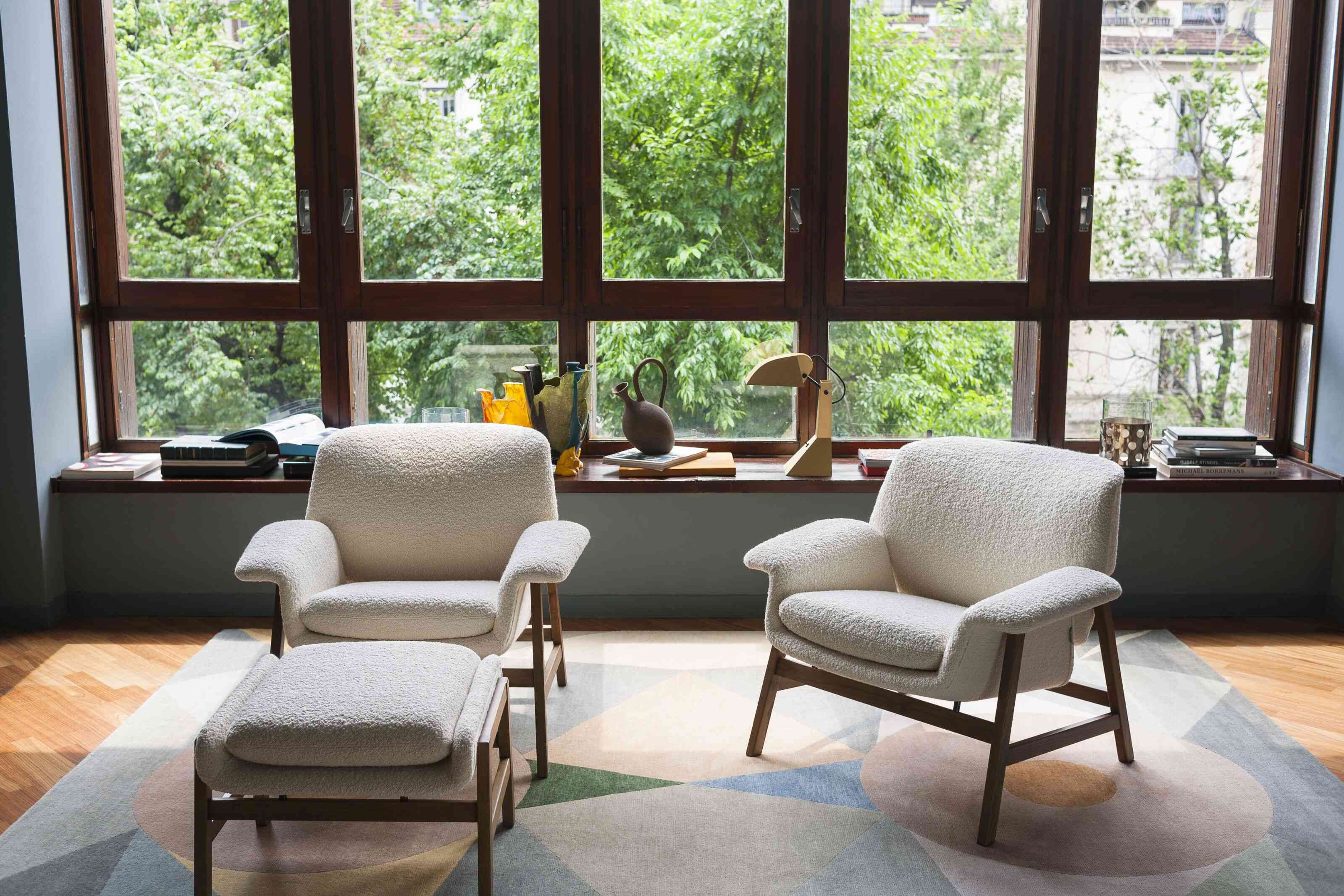 Кресло Tacchini Agnese — переиздание одного из самых известных кресел Джанфранко Фраттини Agnese (1956 г.). Геометричное деревянное основание служит опорой мягкому сидению, состоящему из подушки и слитной с подлокотниками основы. Это создаёт ощущение многослойности. Кресло можно дополнить пуфом.