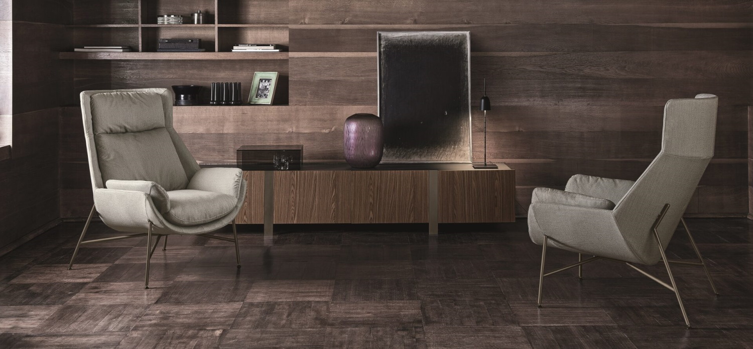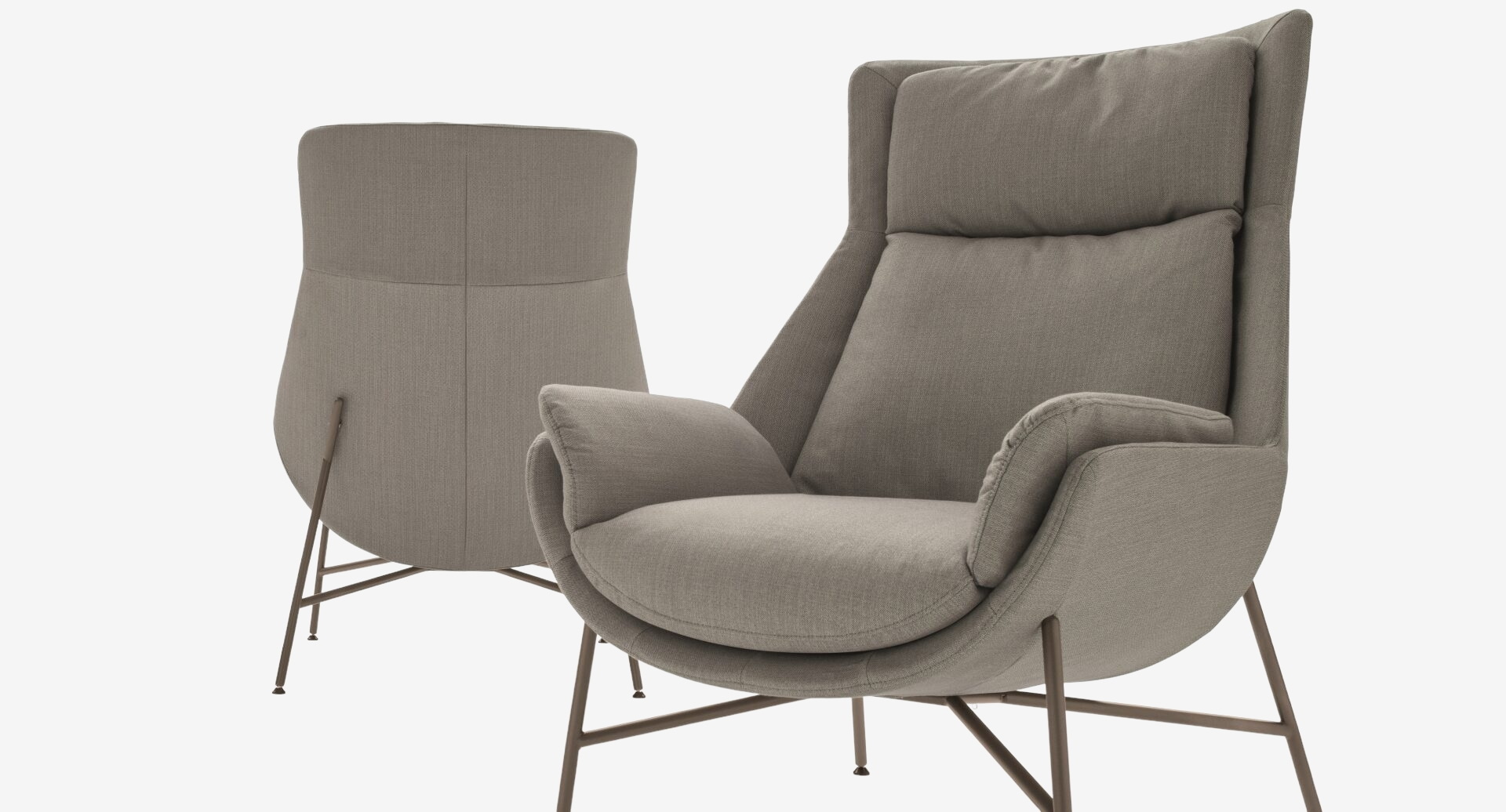 Силуэт кресла Ditre Italia Beetle вдохновлён формой панциря жука: конструкция разделена на три части и поддерживается узкими металлическими ножками. Внешние линие строгие и чётко очерченные, в то время как сиденье и спинка мягкие и комфортные.