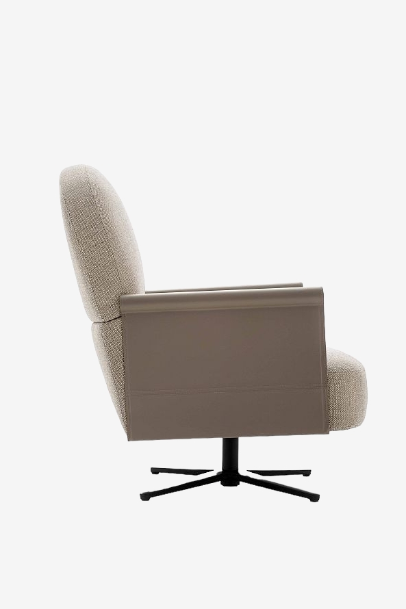 Кресло Ditre Italia Beyl — идеальный выбор, когда вы хотите провести некоторое время в полном одиночестве, расслабившись между двумя подлокотниками, вытянувшись и положив голову на подголовник. Погрузитесь в его тёплые объятия; округлая форма спинки и изысканный дизайн кожаных подлокотников делают его силуэт очень стильным и элегантным.