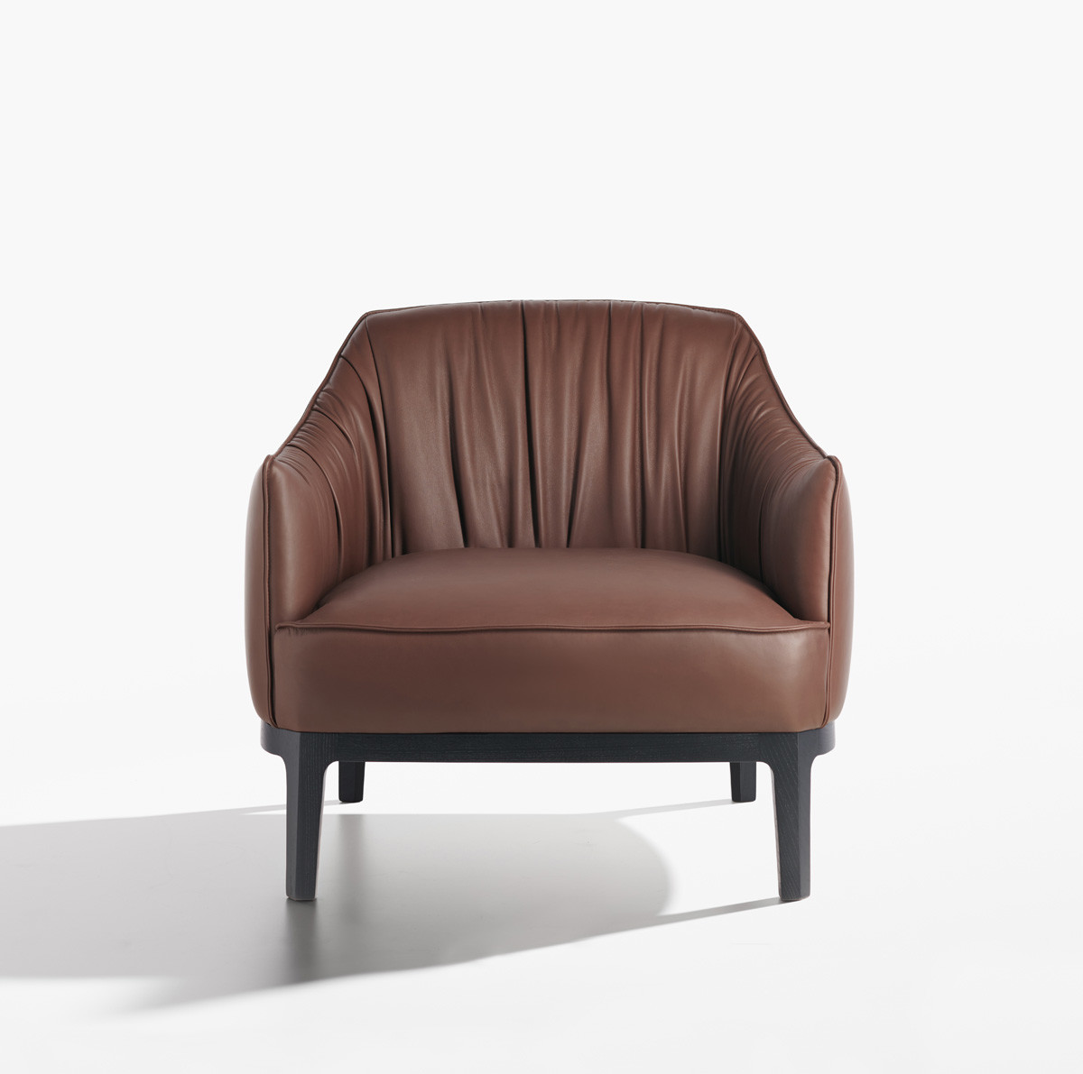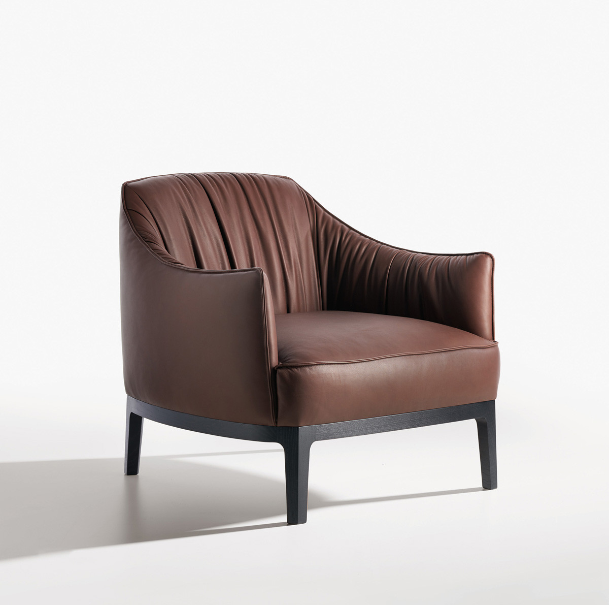 Кресло Potocco Blossom от Bernhardt & Vella — модель с глубокой посадкой и обволакивающей формой. Мягкие складки на внутренней поверхности спинки и боковин. Широкие подлокотники плавно закруглены и приподняты. Низкое основание из темного ясеня с короткими ножками.