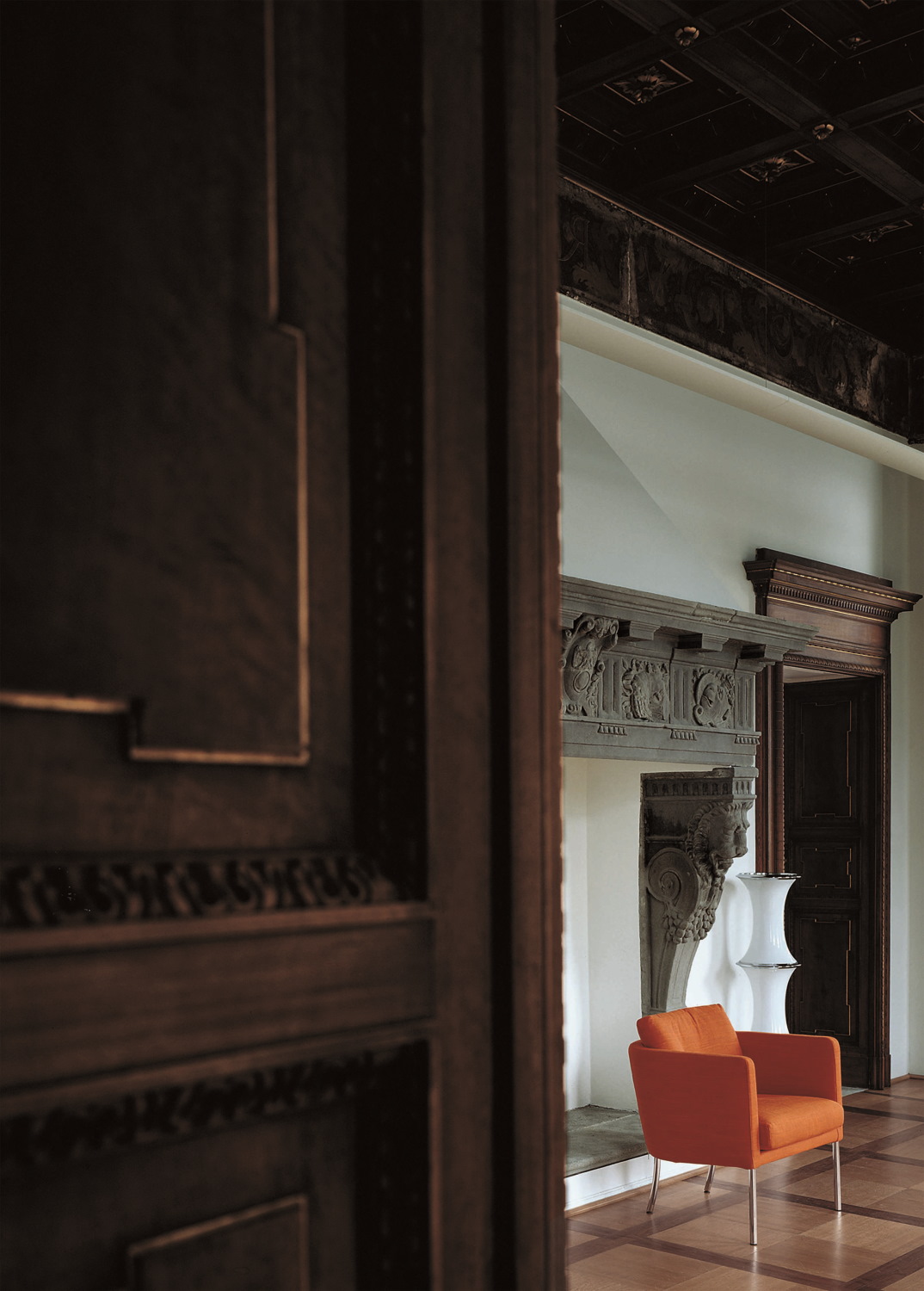 Кресло Living Divani Cafè доступно под заказ в разных категориях ткани и кожи, а также в различных вариантах отделки ножек. Металлические ножки также доступны в разных вариантах отделки. Увидеть их все вы можете, нажав «Карта отделок».