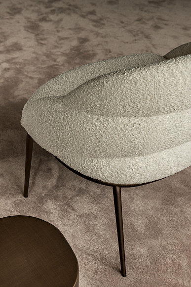 Закруглённая спинка кресла Cattelan Italia Camilla Lounge плавно обволакивает тело и поддерживает осанку. Задняя часть Camilla Lounge украшена тремя горизонтальными строчками, создающими мягкими извилистые изгибы. Вытянутые ножки из элитных пород дерева гармонично дополняют силуэт кресла.