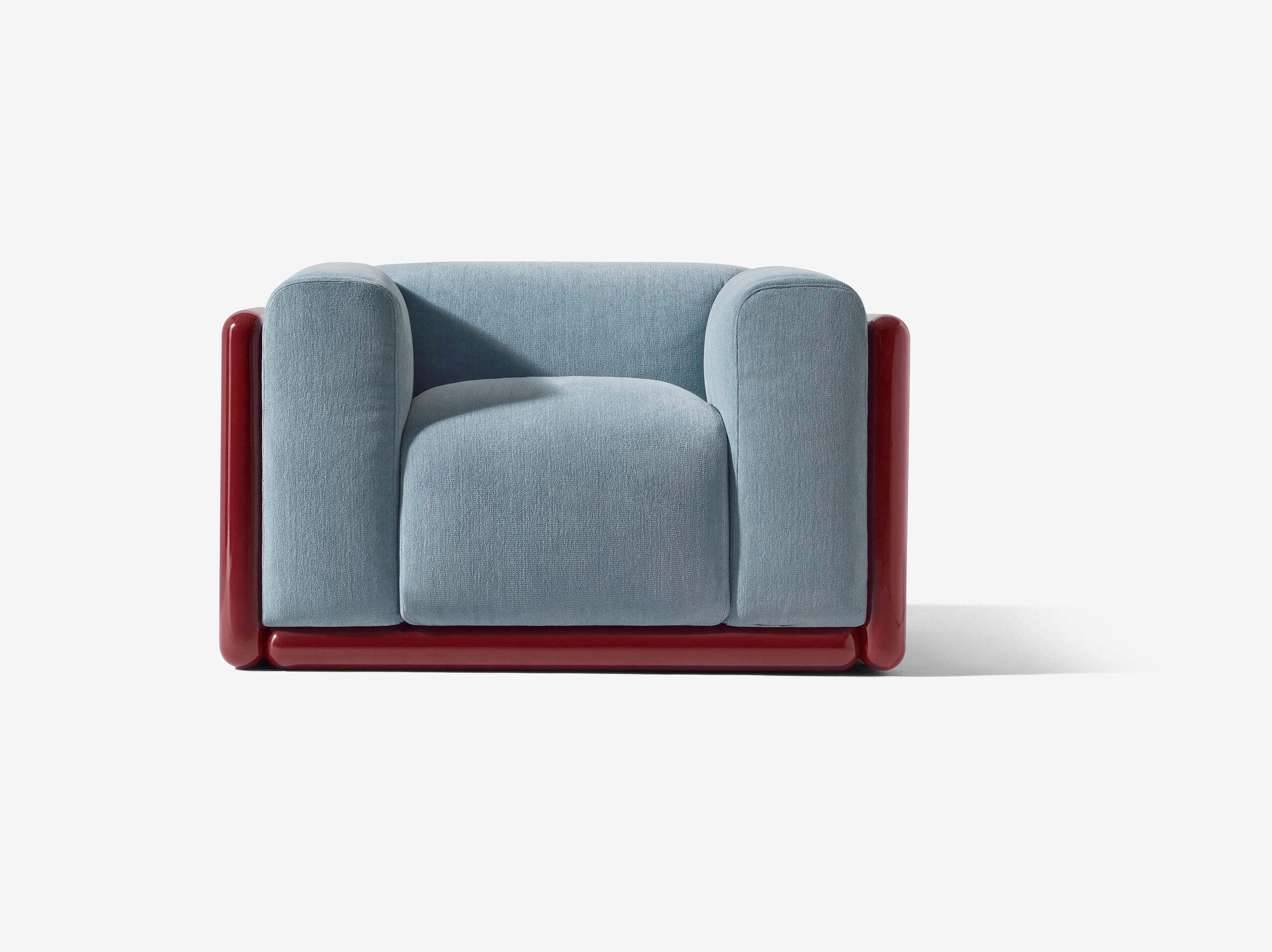 Каркас кресла Cassina Cornaro Armchair изготовлен из бука либо ясеня. Наполнитель выполнен из переработанного ПЭТ-волокна с добавлением полиолов биологического происхождения. Обивка — ткань.