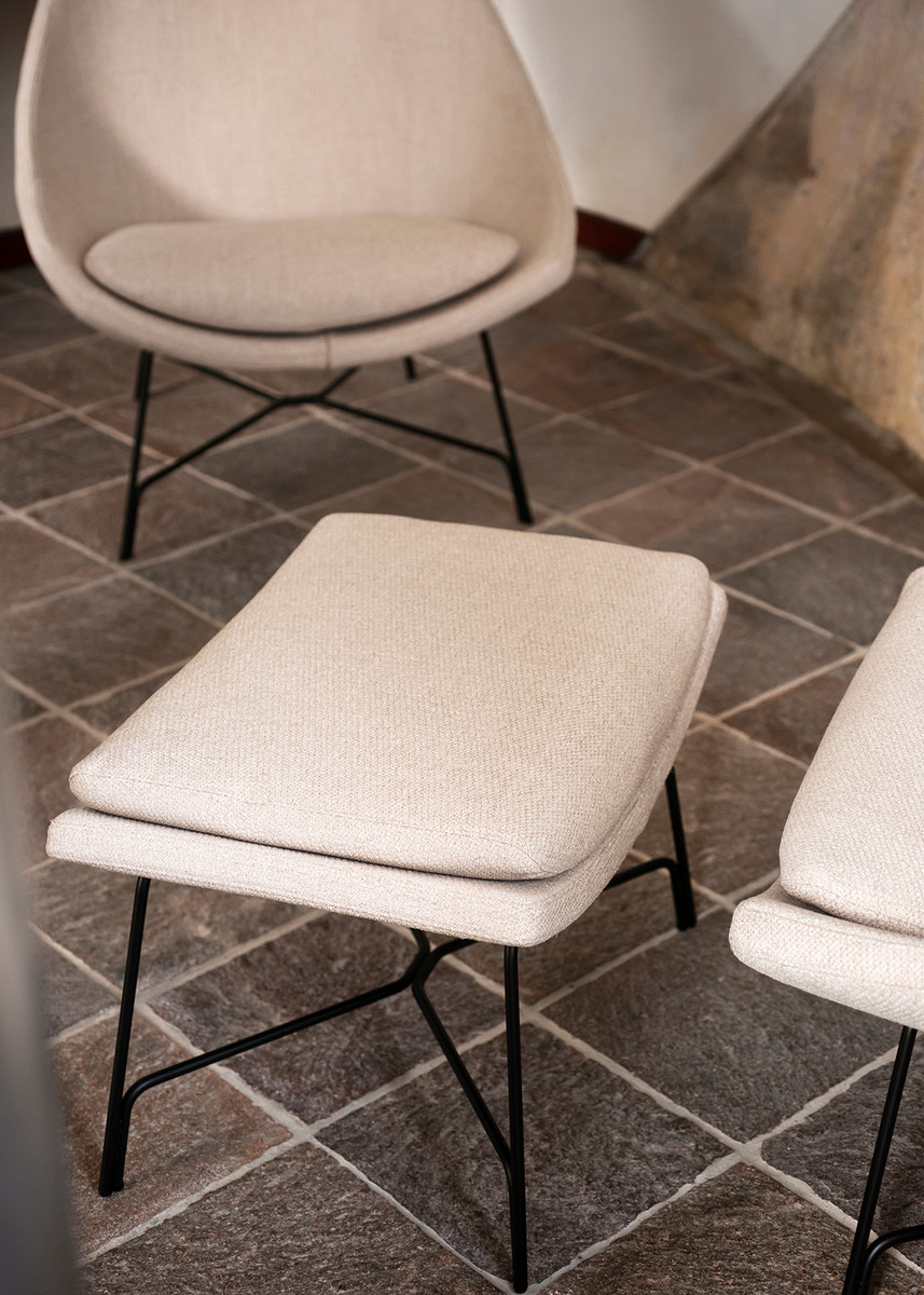 Основание: алюминий с черным покрытием. Обивка: по карте отделок фабрики. Наполнитель: огнестойкий пенополиуретан.