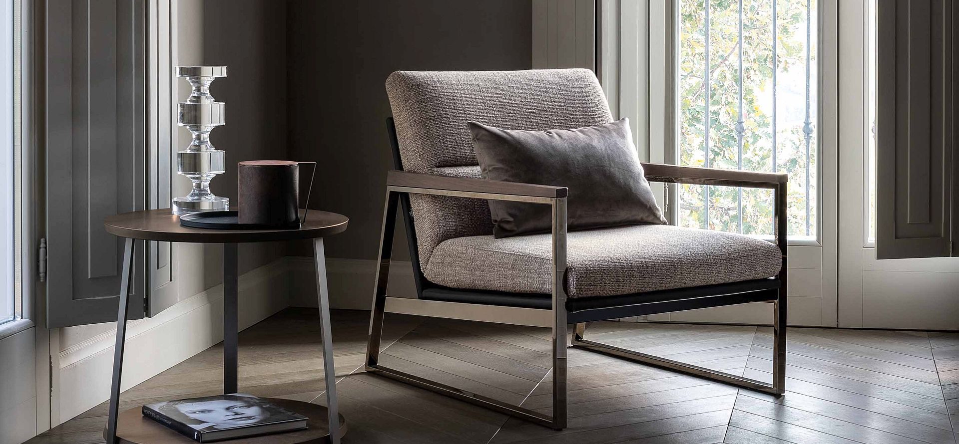 Благодаря металлическому каркасу с отделкой из чёрного никеля и деревянным подлокотникам кресло Ditre Italia Daytona идеально подойдёт любому интерьеру. Безошибочная индивидуальность этого шедевра подчеркнёт и спальню, и гостиную.