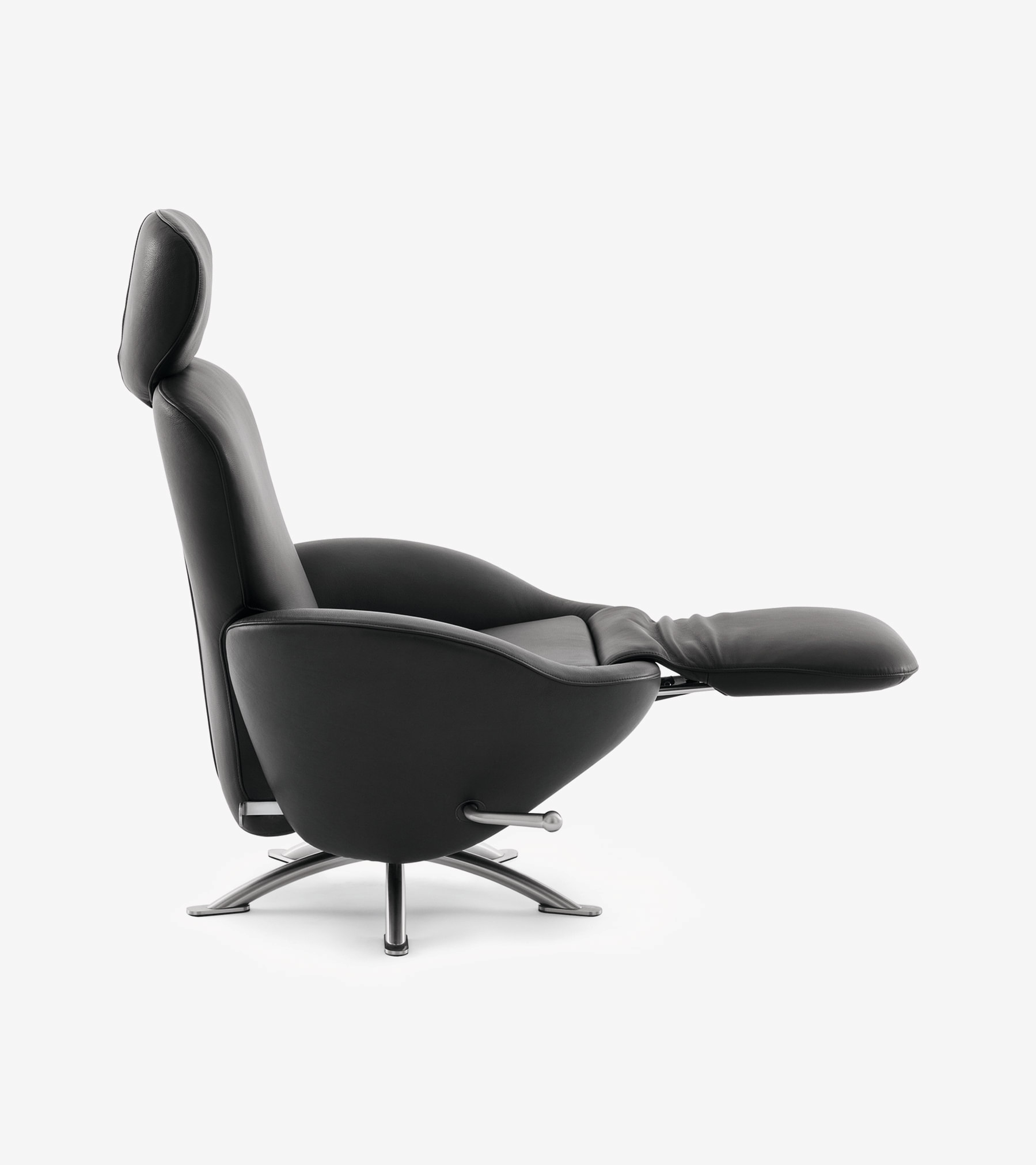 Кресло Cassina Dodo — модель-трансформер, которую можно персонализировать под любую потребность. Предмет мебели имеет удобную откидную спинку, складываемый подголовник и нижнюю часть, способную превращаться в подставку для ног. Сочетание люксовых текстильных материалов и блестящей стали подчёркивает респектабельный характер кресла.
