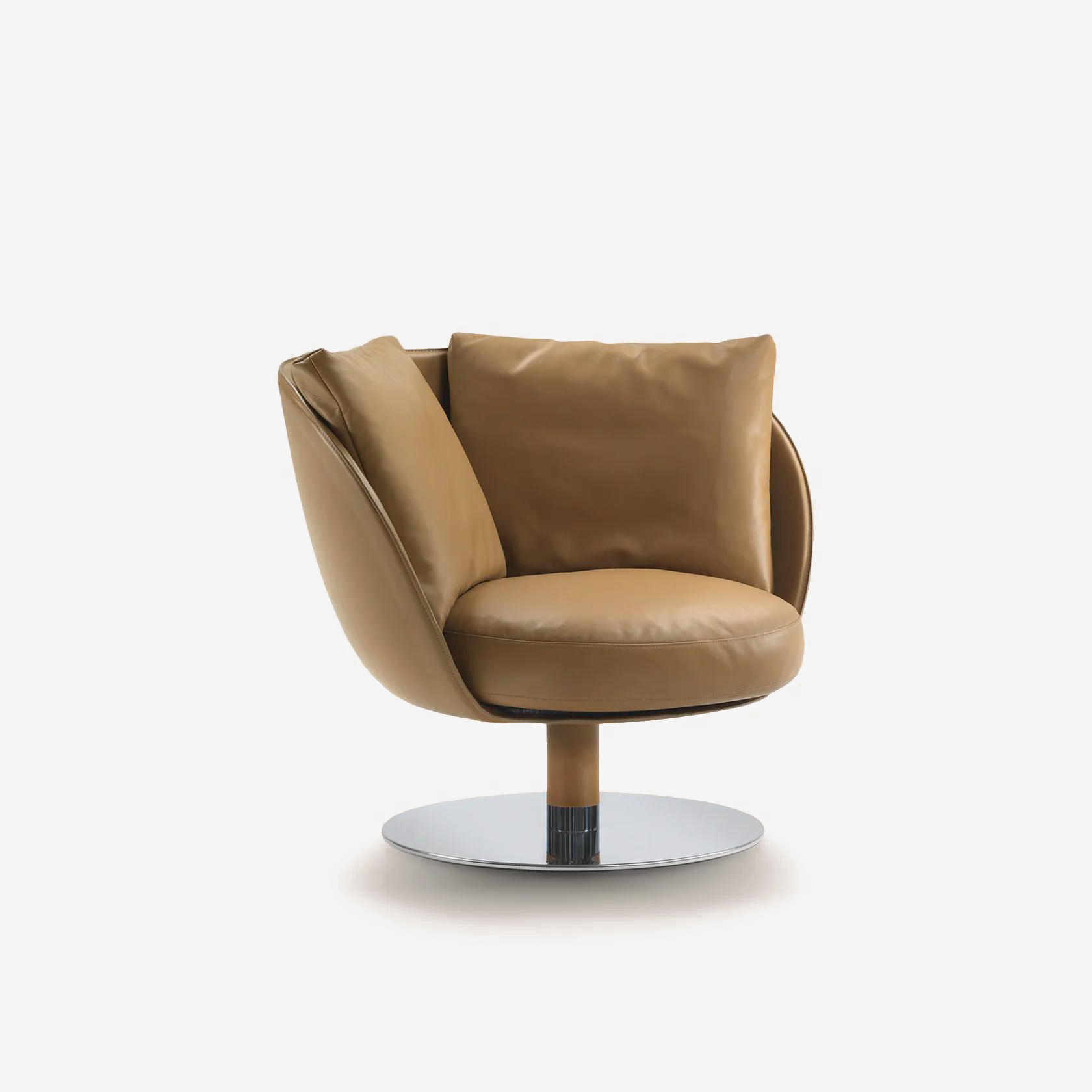 На создание кресла Flexform Eri дизайнера вдохновил элегантно приподнятый воротник пальто. Скруглённая спинка, напоминающая уютный кокон, делает Eri идеальным вариантом для чтения или уединённого отдыха. Нижняя часть кресла может быть выполнена в виде классических ножек или широкого основания на круглой платформе.
