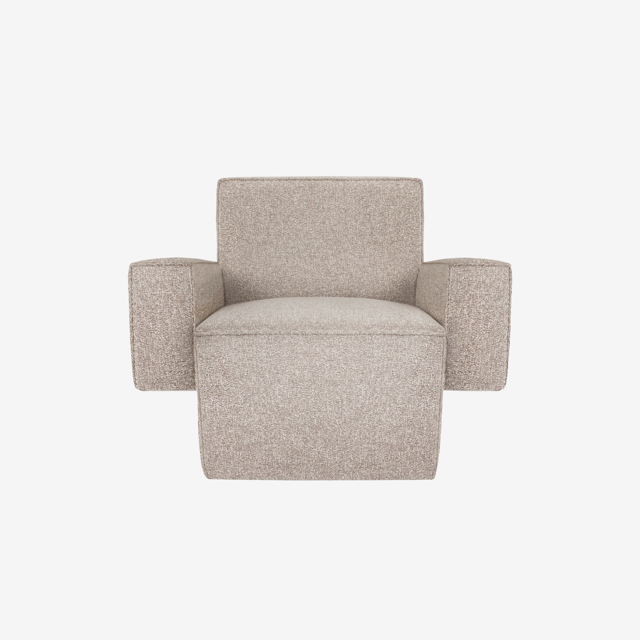 Элементарная блочная форма кресла Hunk Lounge Chair With Armrests особенно характерна для дизайнера Kwangho Lee. Благодаря преувеличенным пропорциям и новаторской конструкции полностью изготовленный из натуральных материалов предмет интерьера получил свой узнаваемый силуэт.