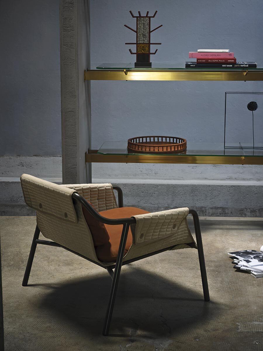 Кресло Tacchini Jacket вдохновлено модой. Подвесная база явно напоминает стеганую куртку, особенно эффектно смотрятся контрастные кнопки. Две мягкие подушки отвечают за удобство кресла, для них можно выбрать отличную от основы расцветку.