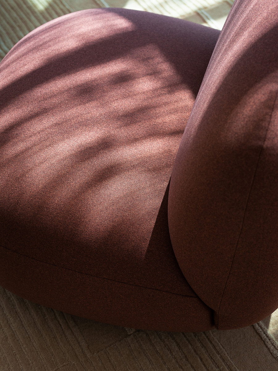 Кресло Potocco Jade от Hanne Willmann — версия без подлокотников с цельной формой. Монолитный объем с округлыми краями. Обивка полностью скрывает конструкцию. Модель дополняет модульную систему коллекции Jade.