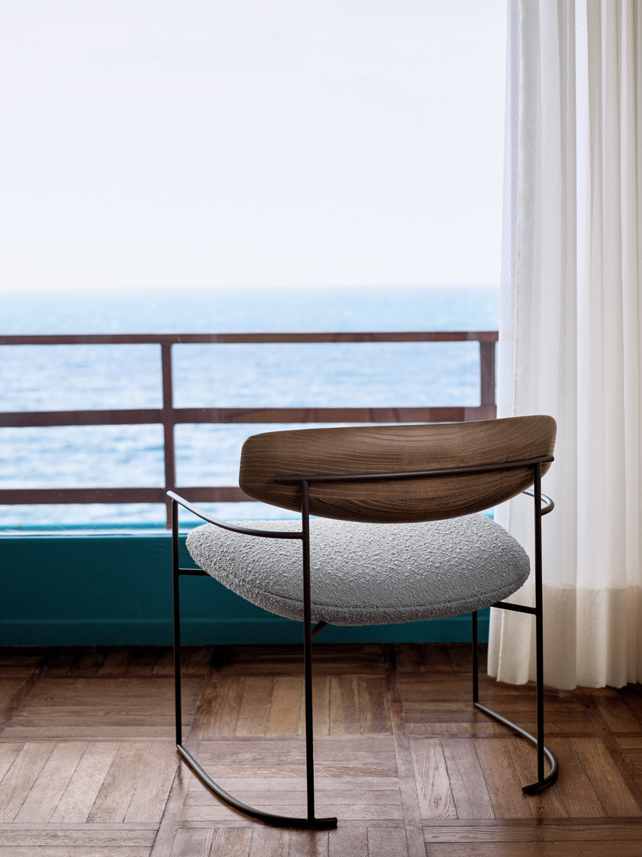Кресло Potocco Keel от M+V — модель из коллекции Keel со строгим металлическим каркасом. Фактурная деревянная спинка, сиденье овальной формы со светлой текстурной обивкой. Открытая конструкция выглядит легко и воздушно.