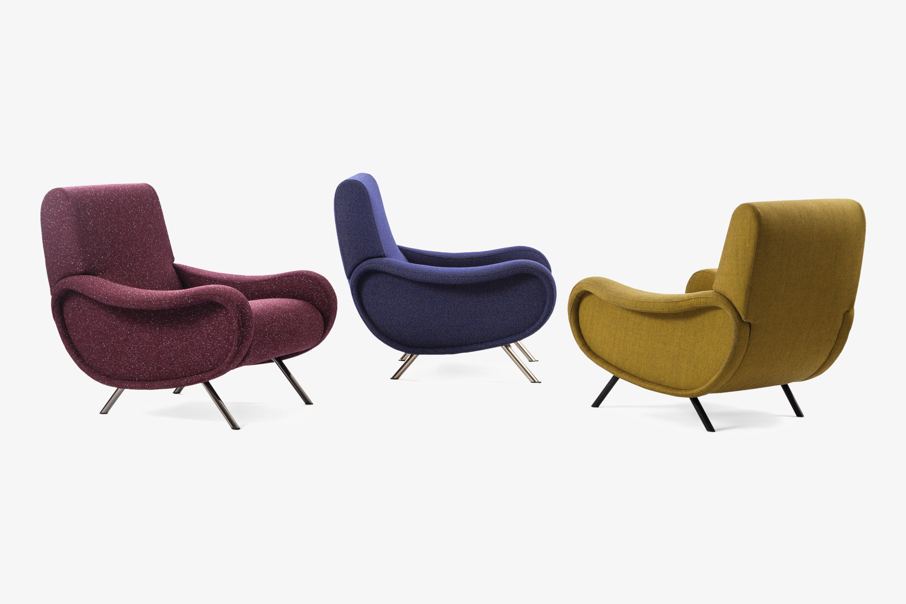 Кресло Cassina Lady, впервые представленное публике в 1951 году, получило известность благодаря своей инновационной для того времени конструкции. Отличительной чертой изделия является сочетание тонких металлических ножек и мягких объёмных элементов. Подлокотники кресла украшены декоративным выступающим обрамлением.
