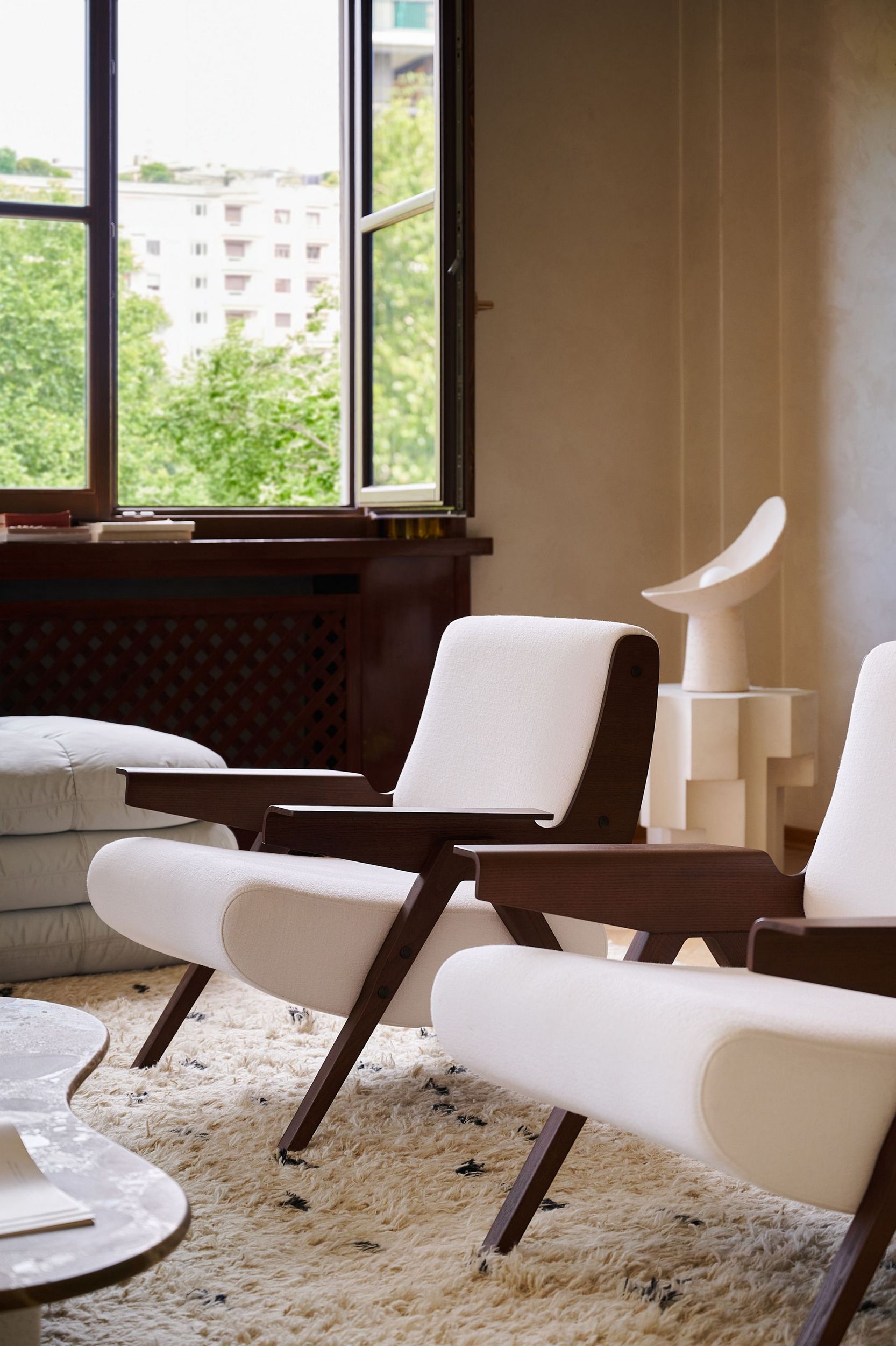 Кресло Tacchini Lina — модель с благородным и строгим дизайном от Gianfranco Frattini. Простые линии и минимум деталей - деревянный каркас, широкие подлокотники, удобная посадка. Стиль, неподвластный времени.