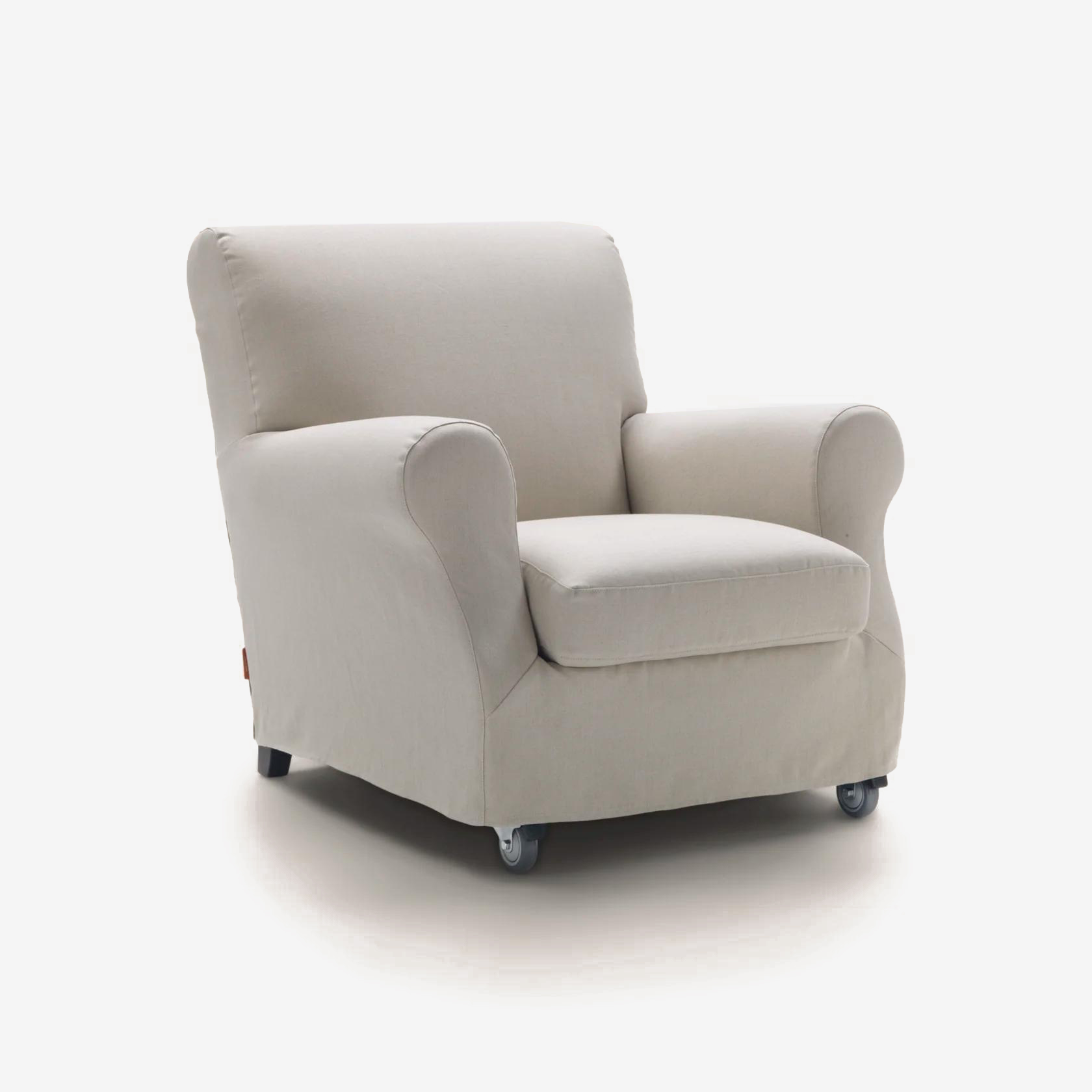 Облик кресла Flexform Nonnamaria вдохновлён эстетикой ретро-мебели. Объёмная форма и фигурные подлокотники делают Nonnamaria по-настоящему уютным предметом мебели. Задняя сторона кресла оснащена удобной ручкой для переноски.
