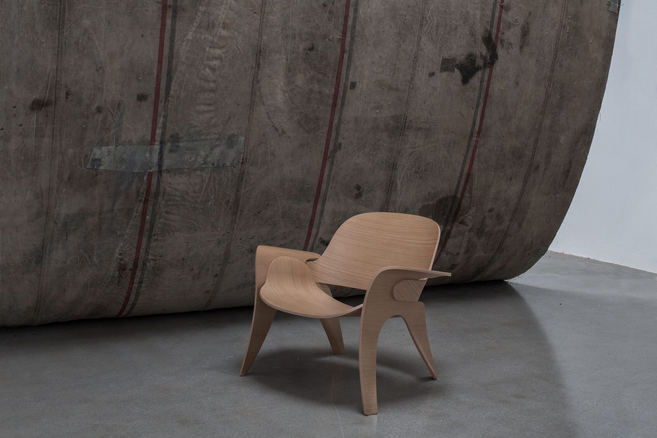 Кресло Massproductions Rose Chair сконструировано без шурупов и других металлических деталей. Сложный силуэт модели подчёркнут многослойными деревянными элементами. Широкие подлокотники и расположенная под углом спинка делают кресло не только стильным, но и удобным.
