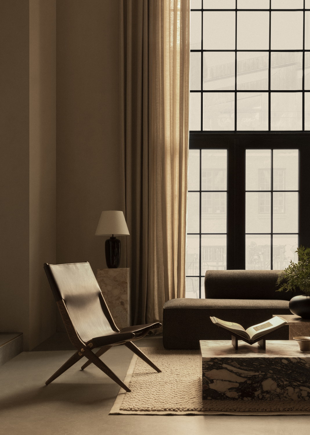 Кресло Audo Saxe Chair изготовлено из цельной древесины. Сиденье — из натуральной кожи.