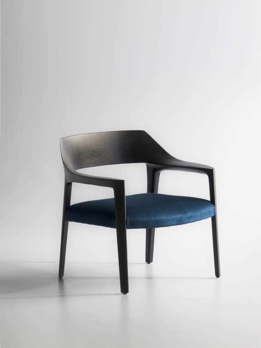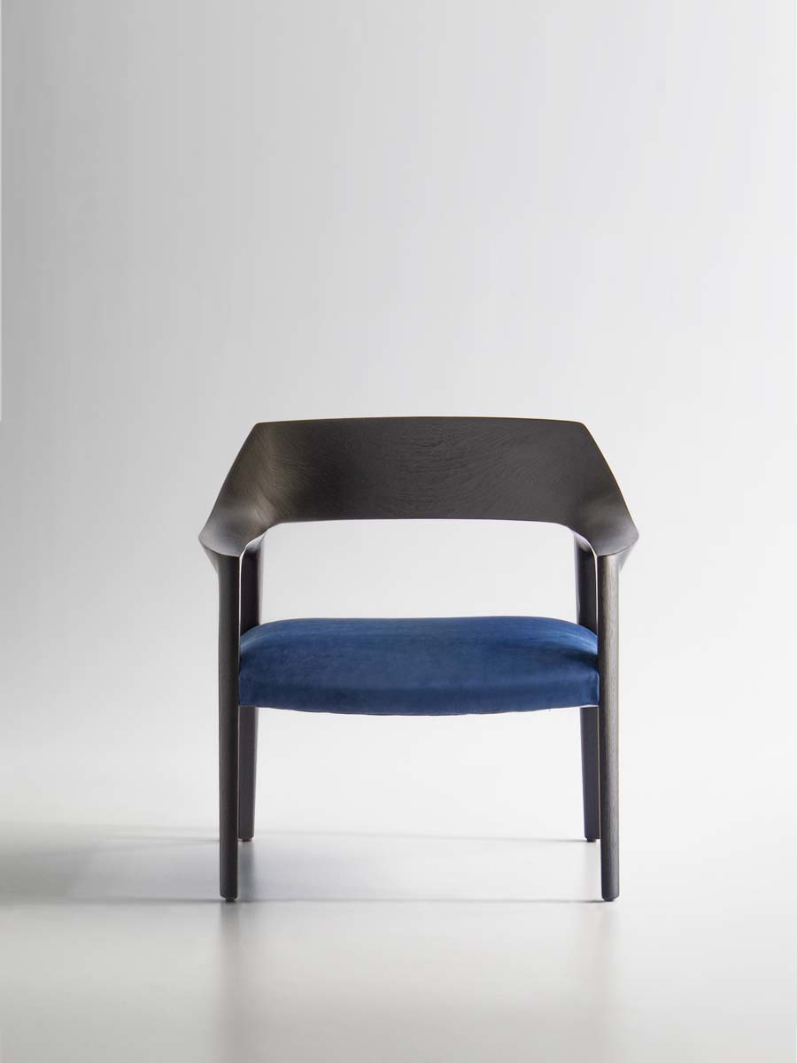 Кресло Potocco Scheggia от Mario Ferrarini — цельная конструкция из массива ясеня. Плавные переходы между спинкой и подлокотниками. Сиденье трапециевидной формы с яркой обивкой. Ножки расходятся под наклоном для устойчивости.