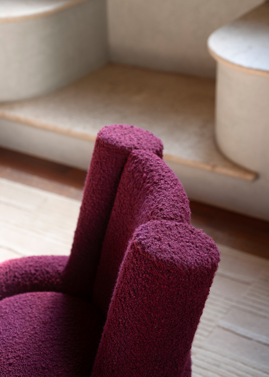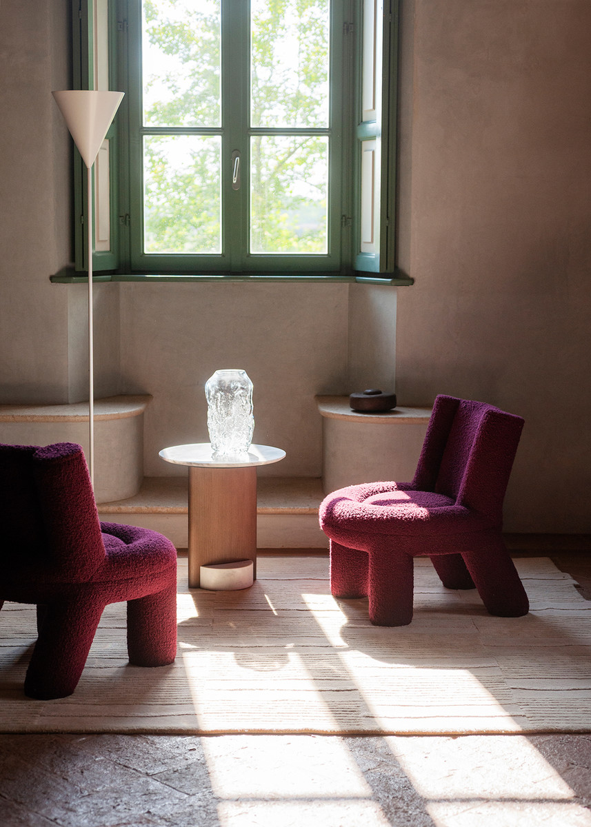 Кресло Potocco Softy от Vladislav Tolokhko — целостная композиция из мягких форм. Цилиндрические ножки и спинка образуют устойчивую конструкцию. Сиденье с углублением и контурным валиком. Обивка из коллекционных тканей Kvadrat.