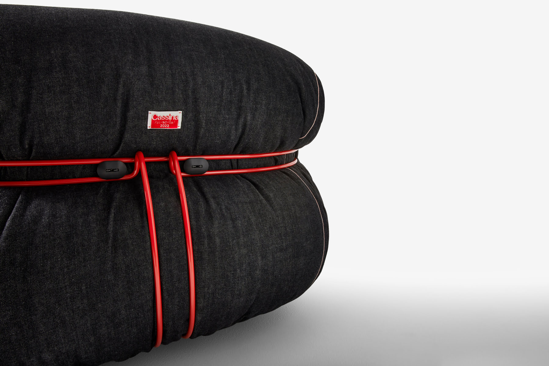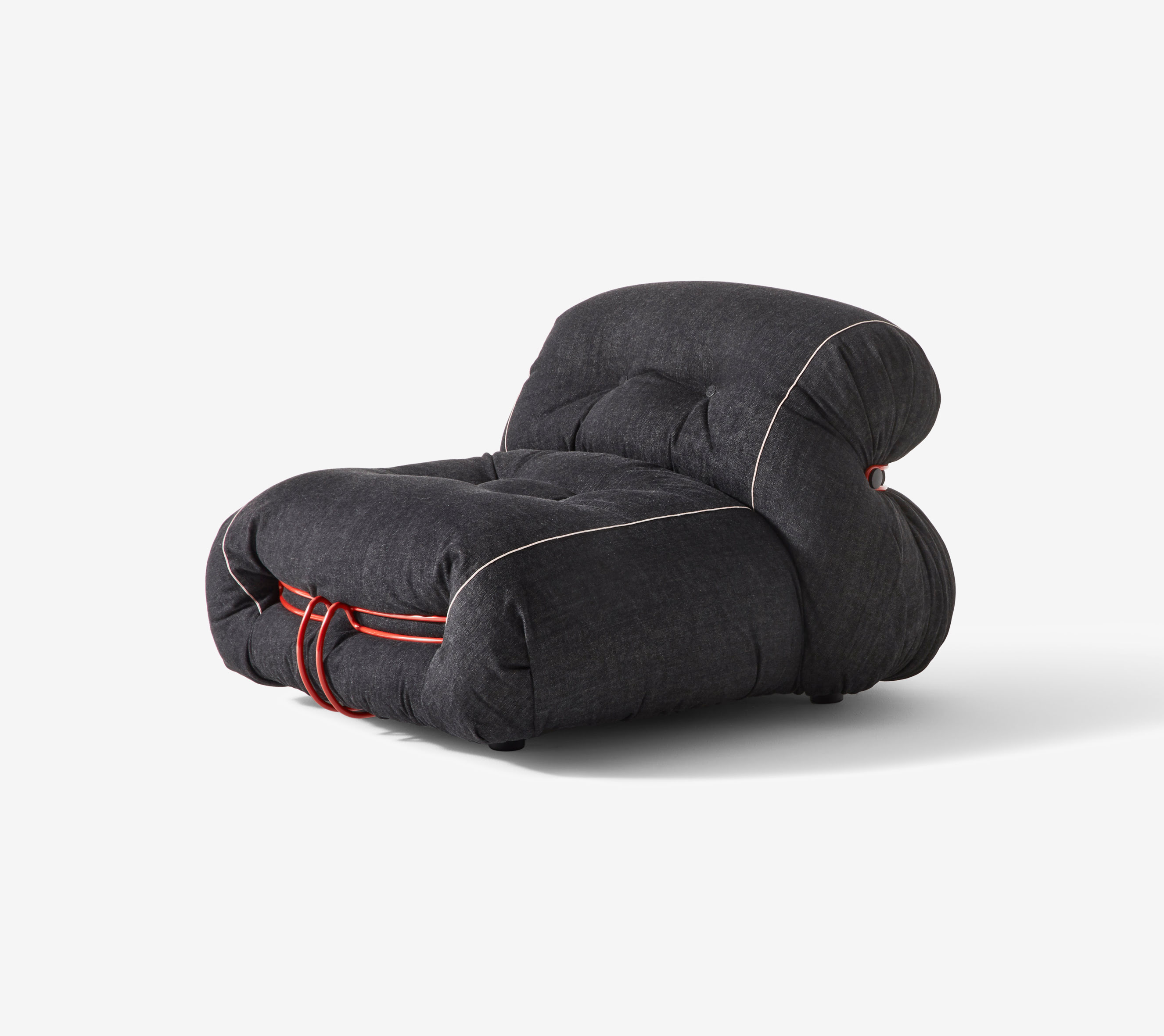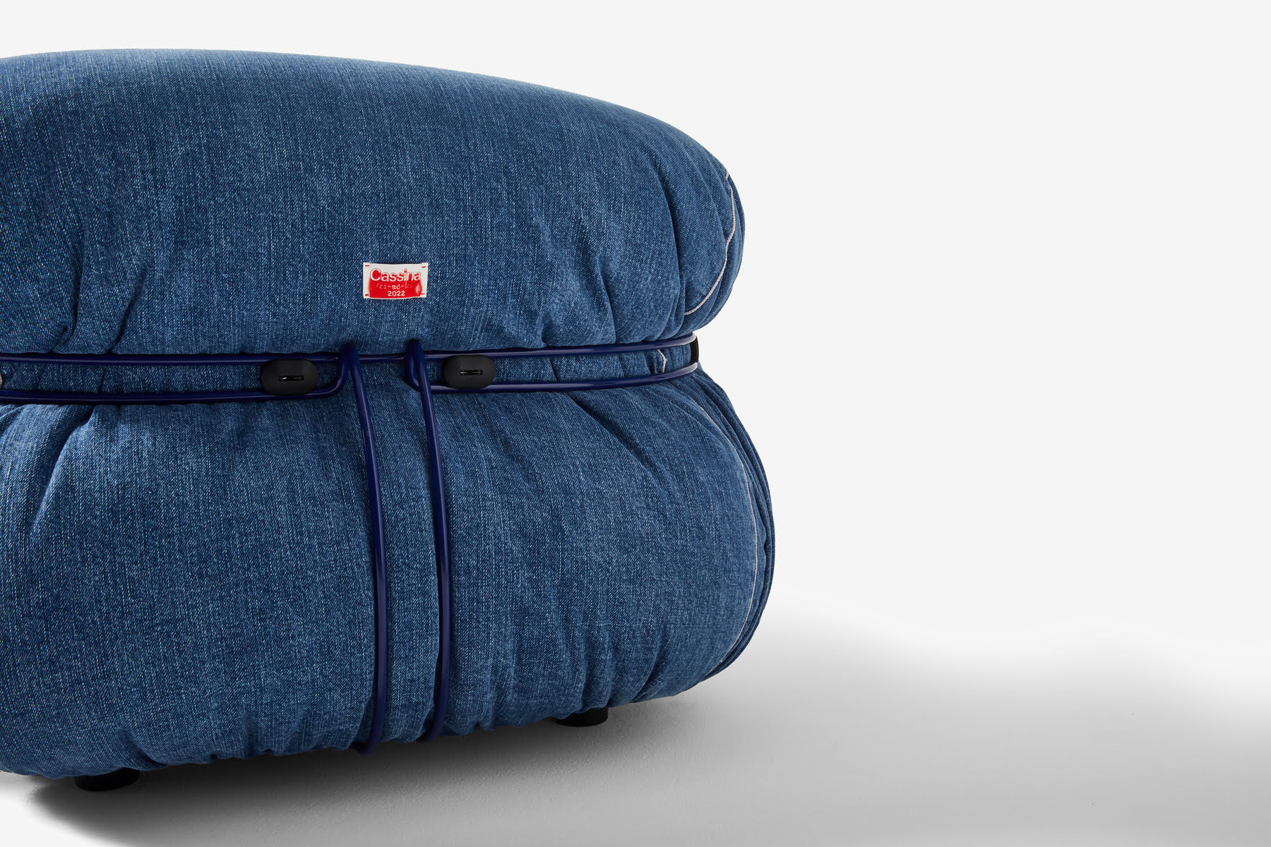 Широкое кресло Cassina Soriana с мягкими контурами прекрасно подойдёт для ежедневного использования. Модель обита высококачественным японским денимом и выпущена ограниченной серией. Кресло дополнено металлическими элементами, поддерживающими конструкцию и выступающими в виде декора.