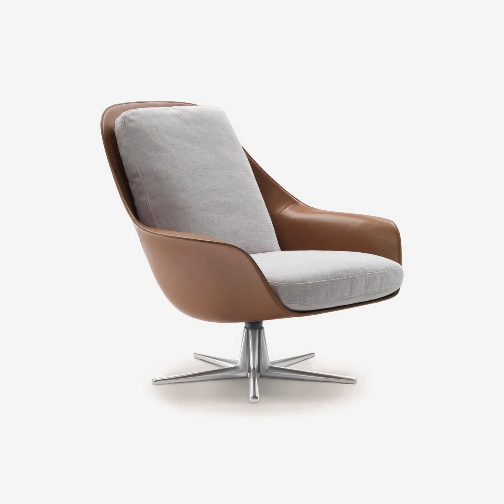Элегантный силуэт кресла Flexform Sveva излучает гостеприимность и уют. Кожаный корпус модели мягко обрамляет упругие подушки, создавая интересный контраст. Кресло располагается на вращающейся ножке с четырьмя либо пятью устойчивыми опорами.
