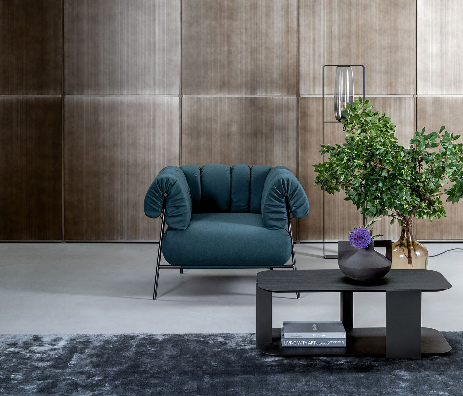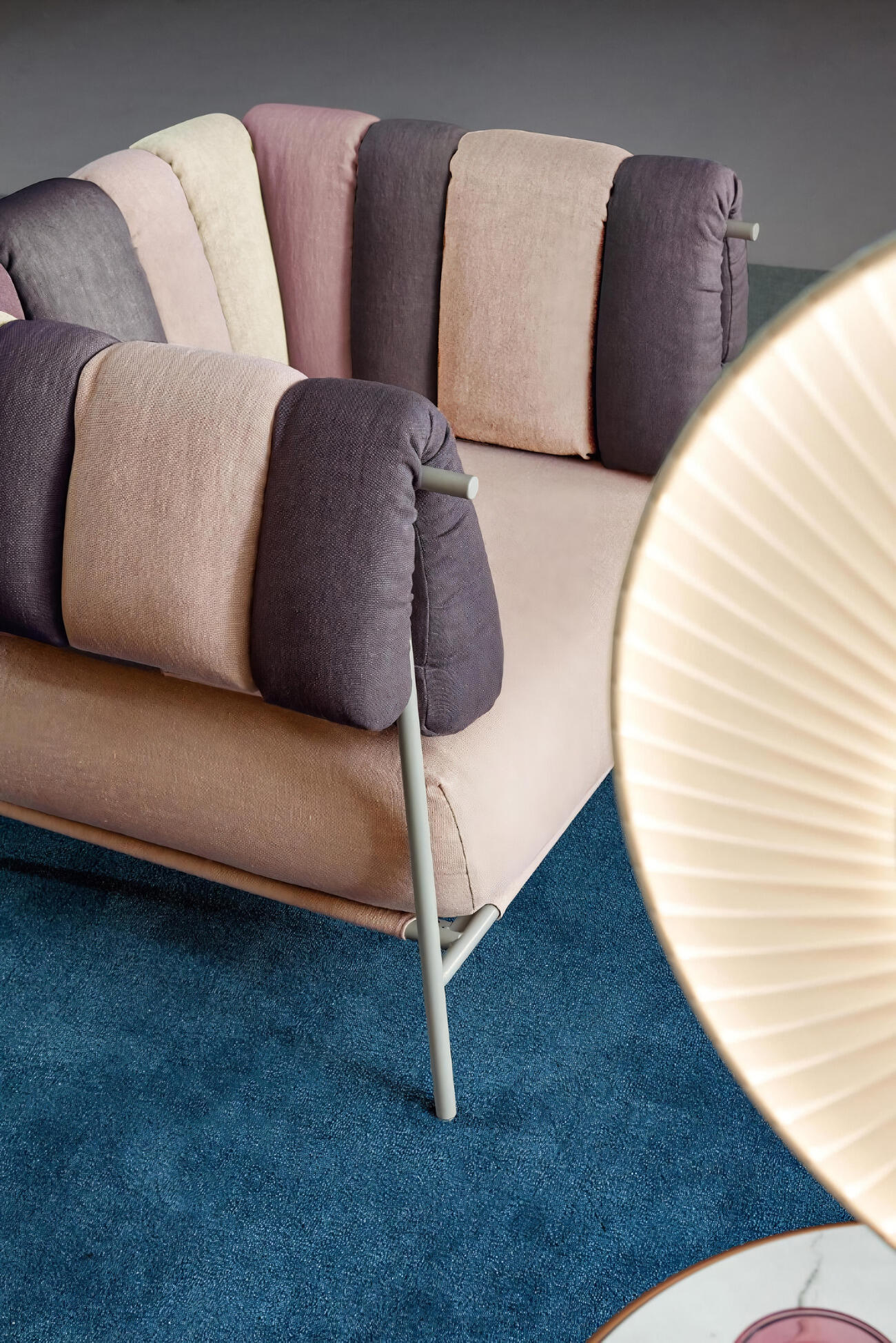 Кресло Bonaldo Tirella черпает вдохновение из контрастов форм и материалов. Модель предоставляет уникальную возможность сочетания множества оттенков в одном предмете мебели. Тонкий металлический каркас кресла буквально окутан округлыми подлокотниками и мягким пышным сиденьем.