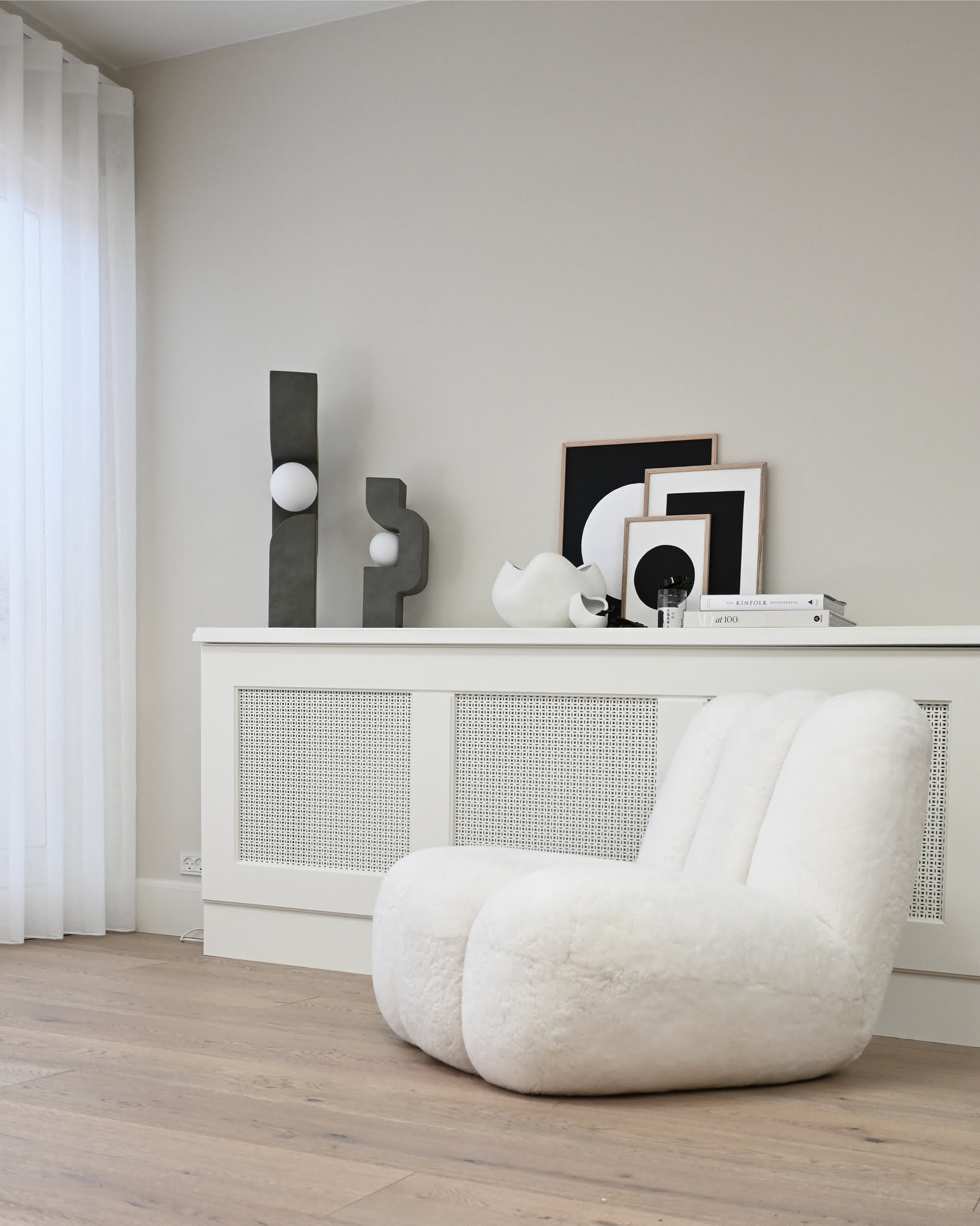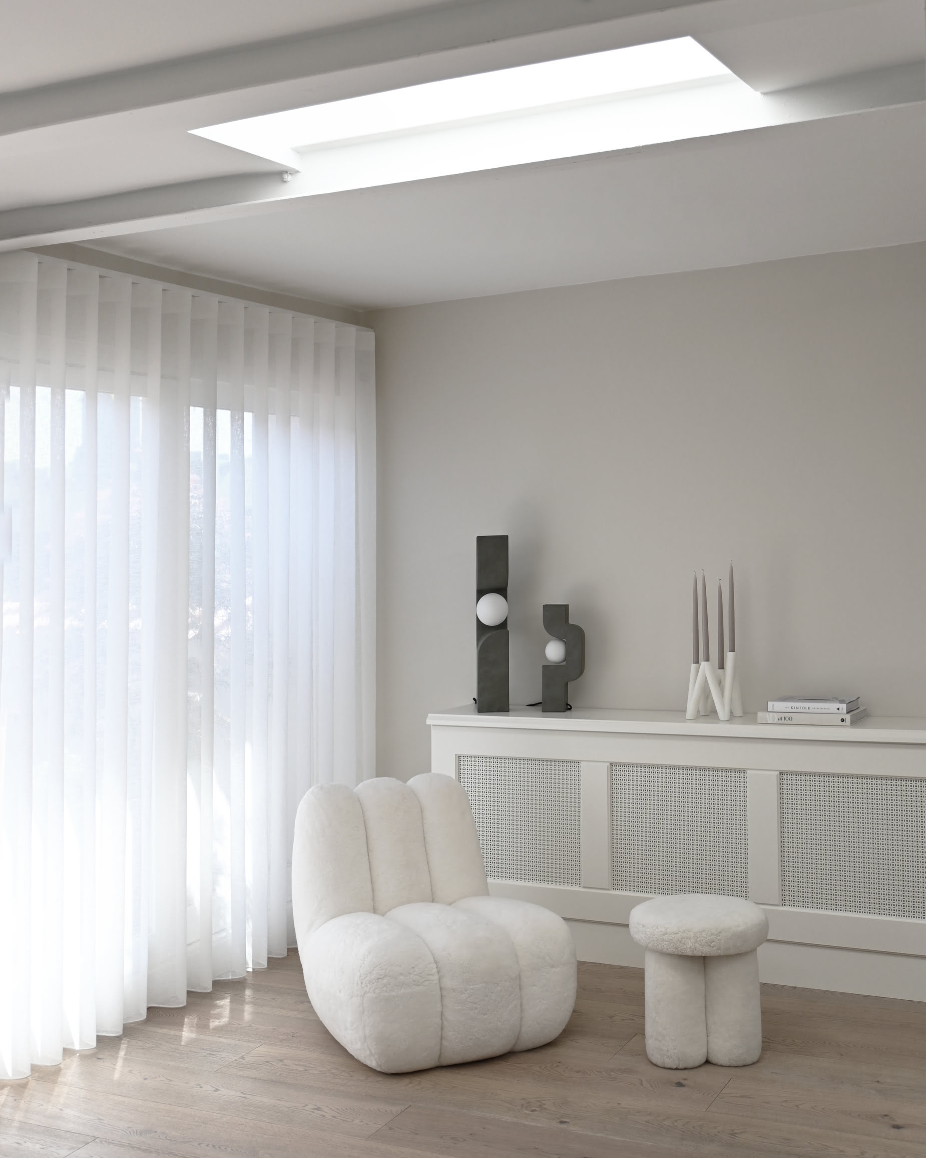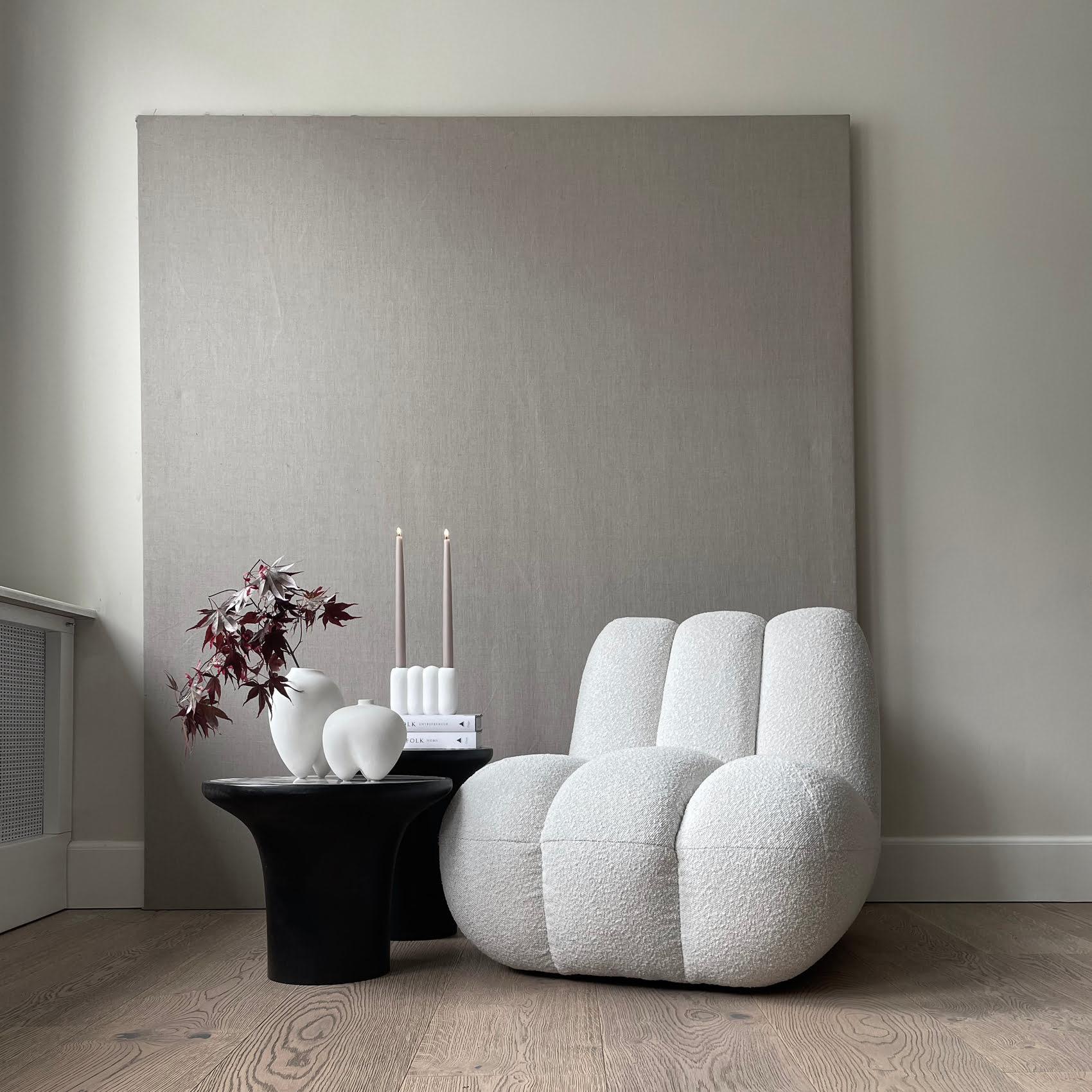 Кресло Toe Chair изготовлено из следующих тканей: букле, овчина, лён, Sunproof Pallazo.