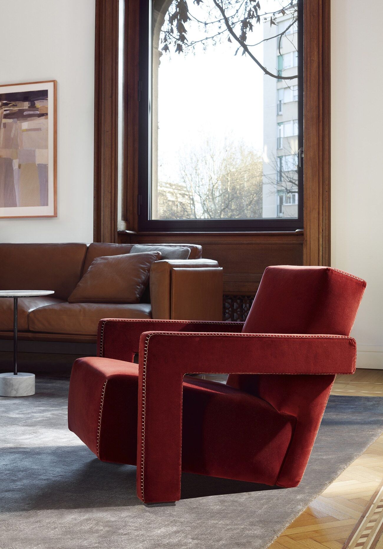 Utrecht Armchair Cassina подходит для интерьеров в стиле модерн, лофт и минимализм. Кресло компактных размеров легко вписывается в частные и общественные пространства — от гостиных и рабочих кабинетов до холлов, галерей и отелей.