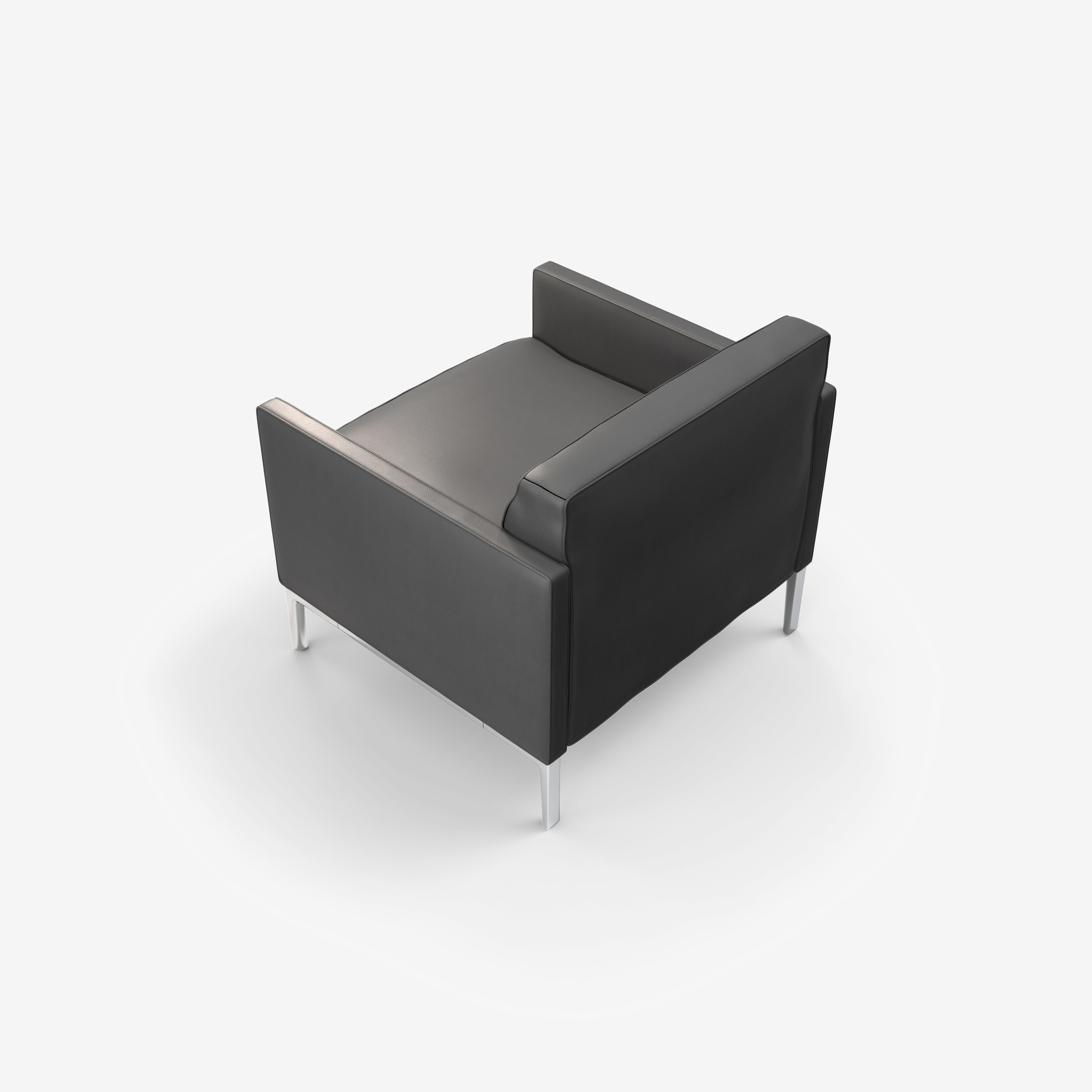 Ножки кресла Cassina Volage Ex-S Night изготовлены из литого алюминия и хрома. Наполнитель выполнен из пенополиуретана различной плотности и ваты из ПЭТ-переработанного волокна. Обивка — ткань, кожа.