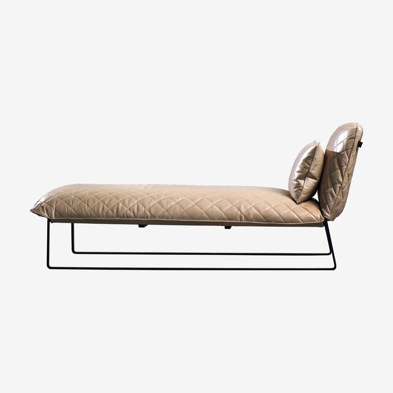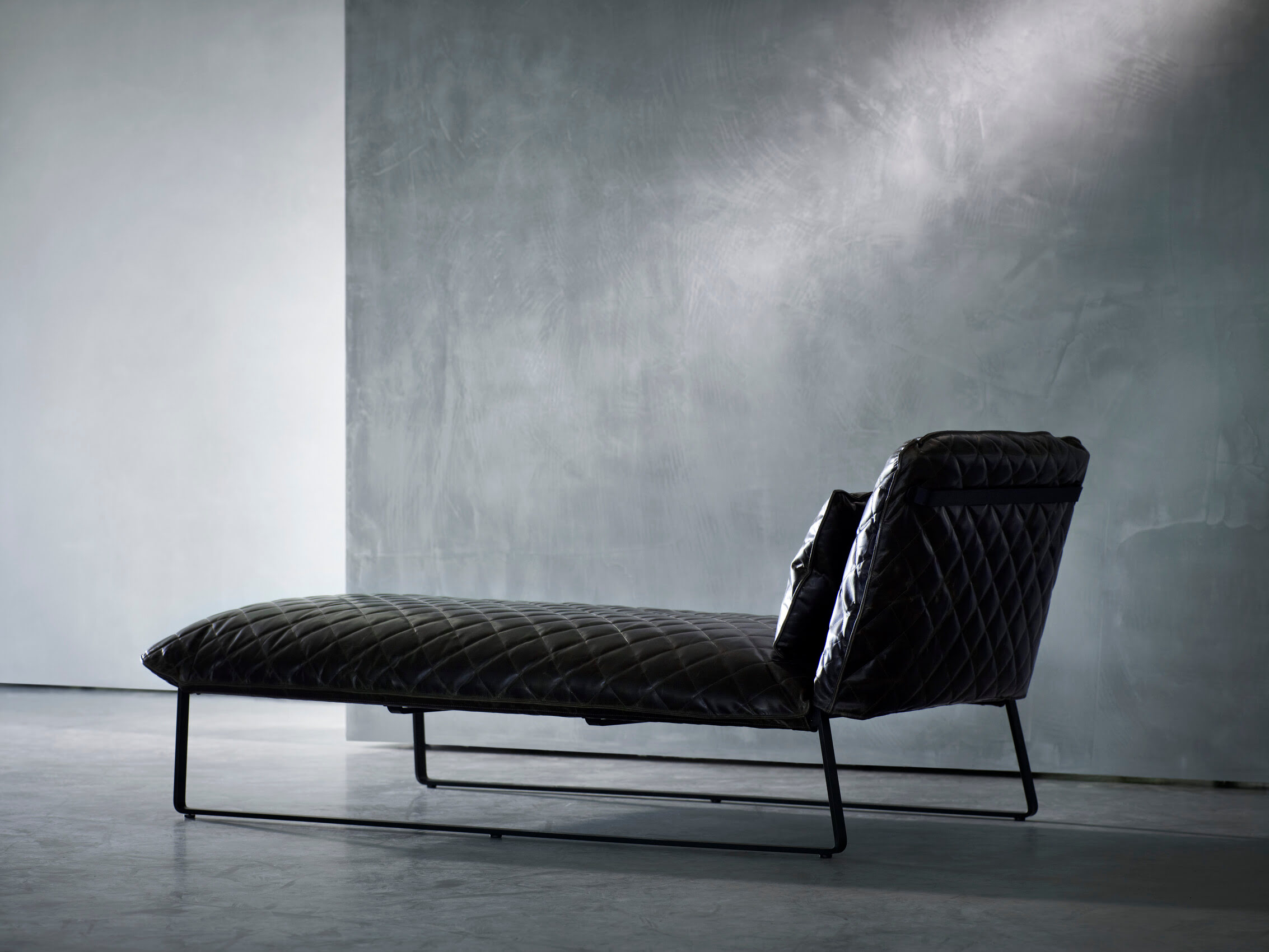 Каркас кушетки Kekke Longchair — сталь с порошковым покрытием. Сиденье и спинка — пеноматериал высокой упругости и полиэфирные волокна. Подушки набиты гусиным пухом. Обивка — высококачественная ткань, кожа.