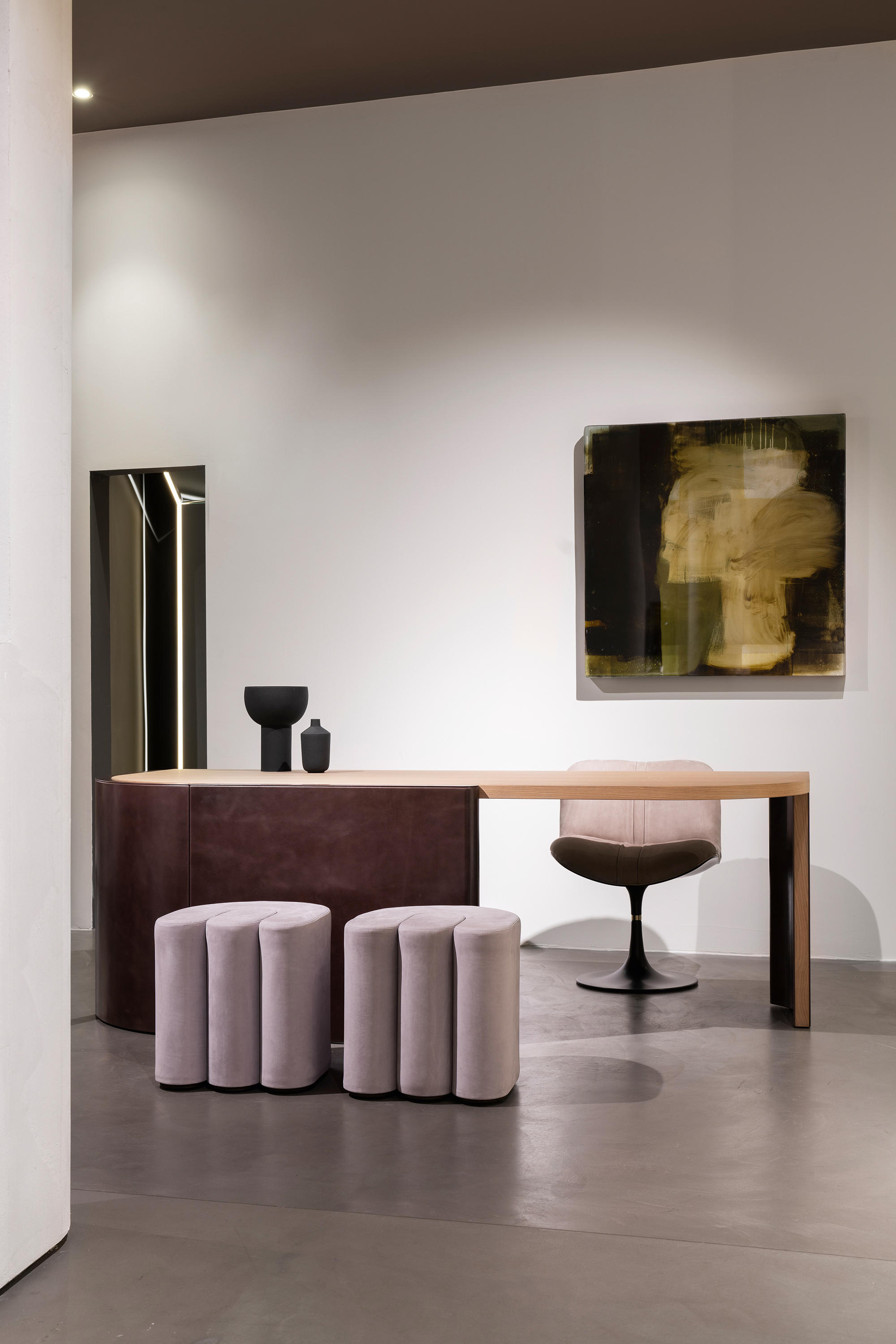 Пуф Baxter Adel состоит из модульных элементов с плавными изгибами. Обивка предмета мебели выполнена из кожи с необычайно мягкой фактурой. Волнообразный пуф может использоваться не только по прямому назначению, но и в качестве эффектного декора.