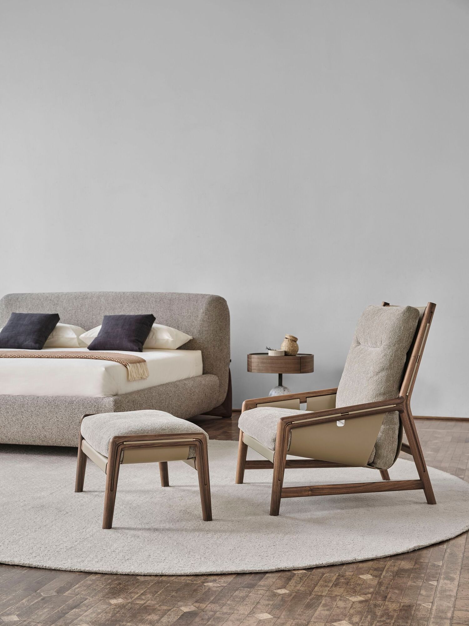 Пуф Porada Bice доступен в разных цветах дерева, кожи и текстиля. За подробным расчетом необходимой конфигурации в нужной отделке, пожалуйста, обращайтесь к менеджерам.