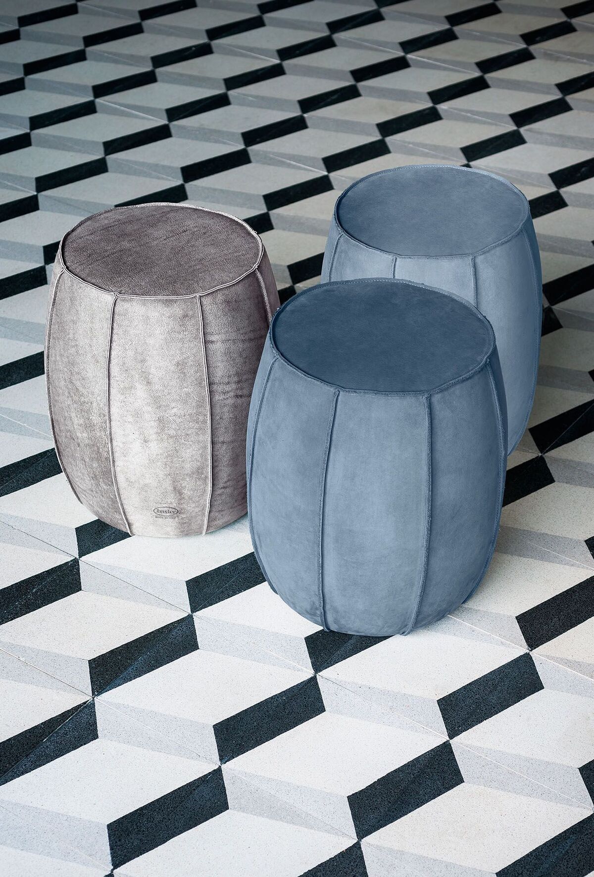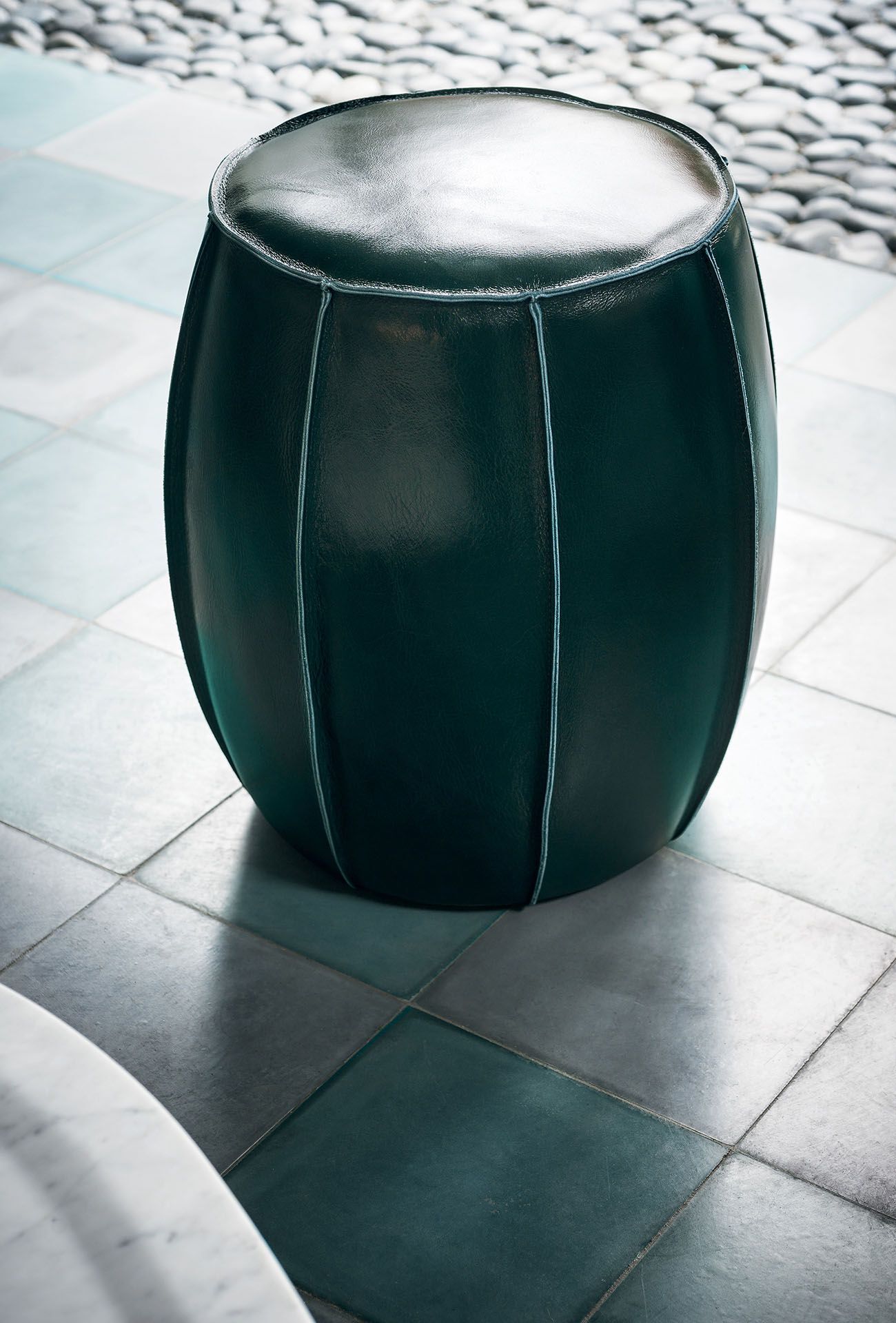 Силуэт пуфа Baxter Bongo имитирует форму бочки. Видимые швы, украшающие боковую поверхность предмета мебели, выступают в виде необычных декоративных элементов. Пуф имеет достаточную высоту, позволяющую использовать его в виде приставного столика.