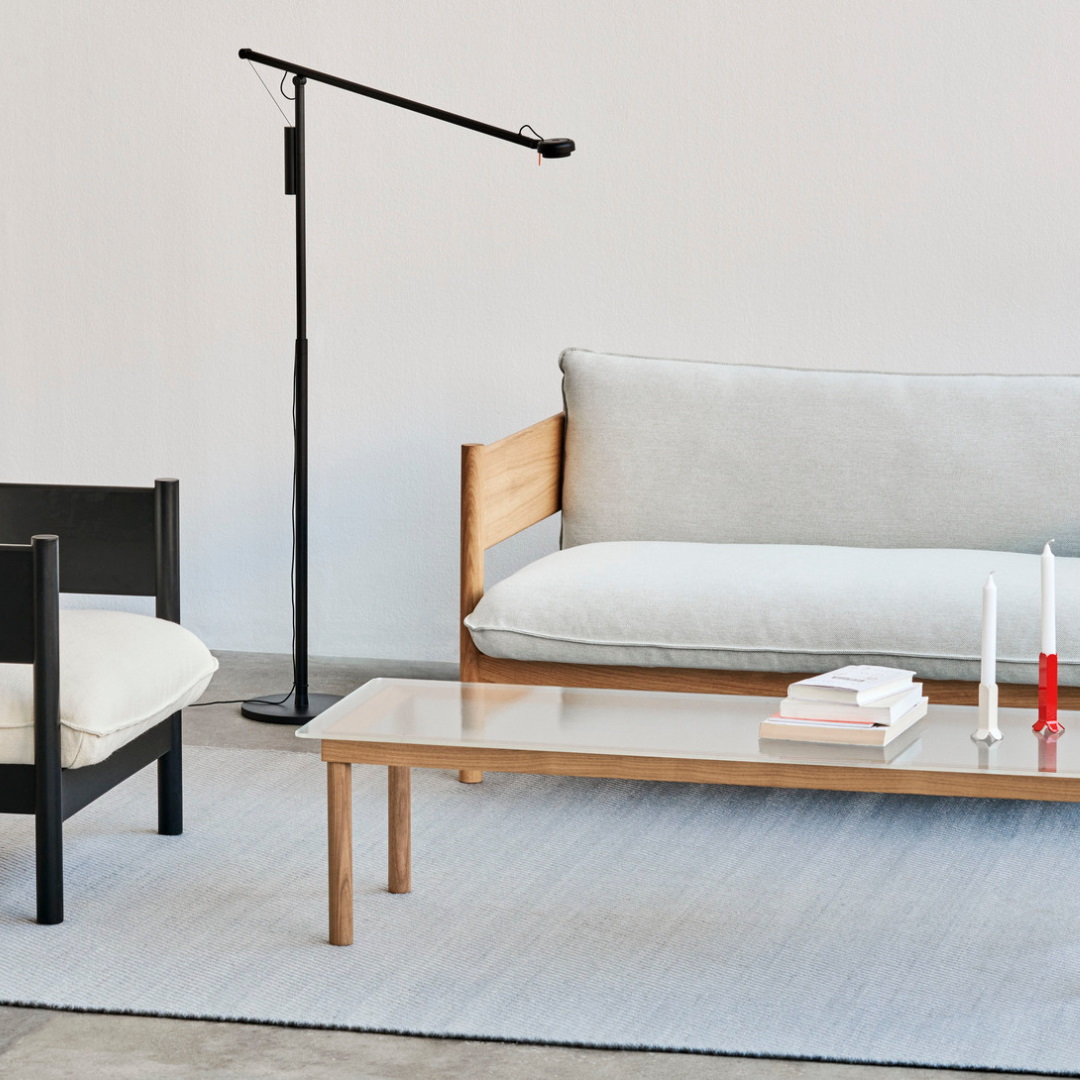 Журнальный столик Hay Kofi (Дания) элегантен, прост и потому универсален. Ножки и основание выполнены из цельного дуба, столешница — из прозрачного стекла с рифлёной структурой.