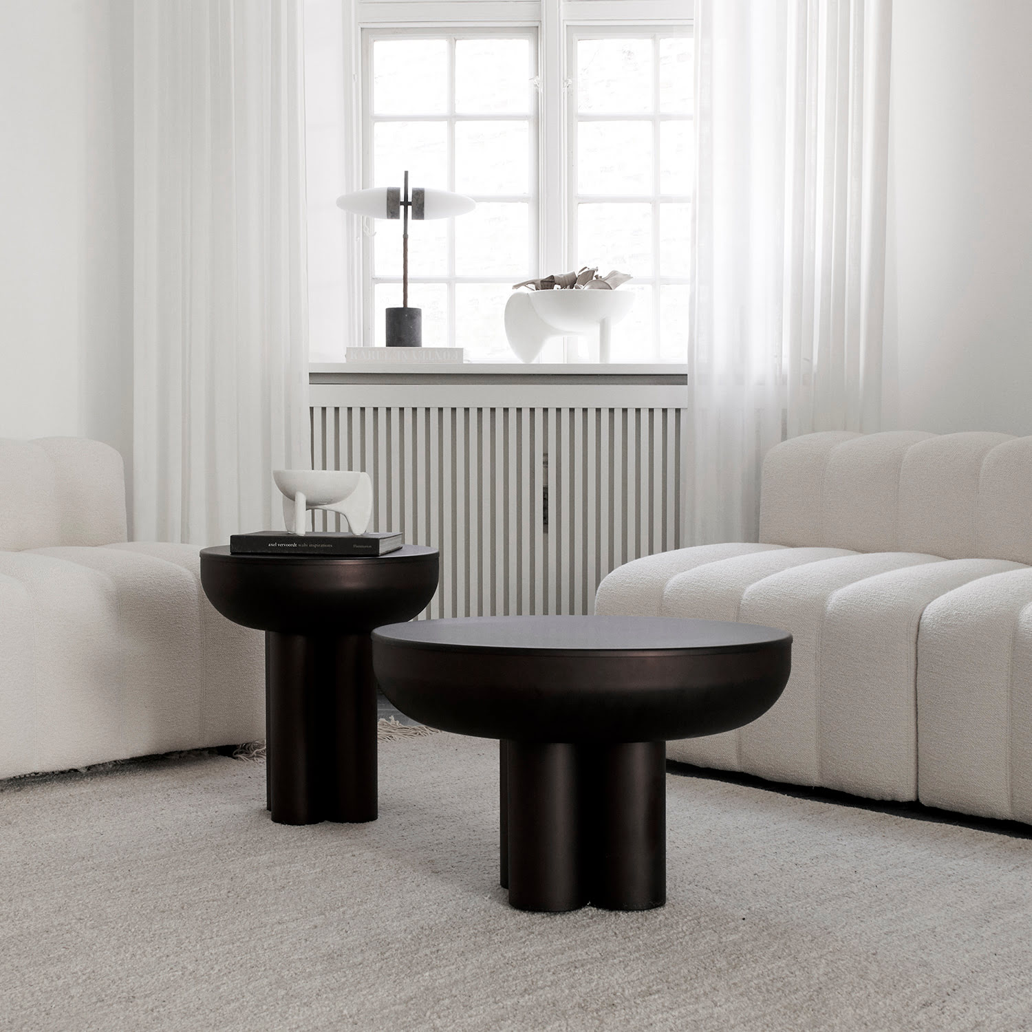 Приставной столик 101 Copenhagen Crown Table, Tall станет органичной частью гостиной или спальной зоны. Дизайн модели вдохновлён архитектурными строениями в стиле брутализма. Столик соединяет в себе круглые ножки-колонны и массивную столешницу.